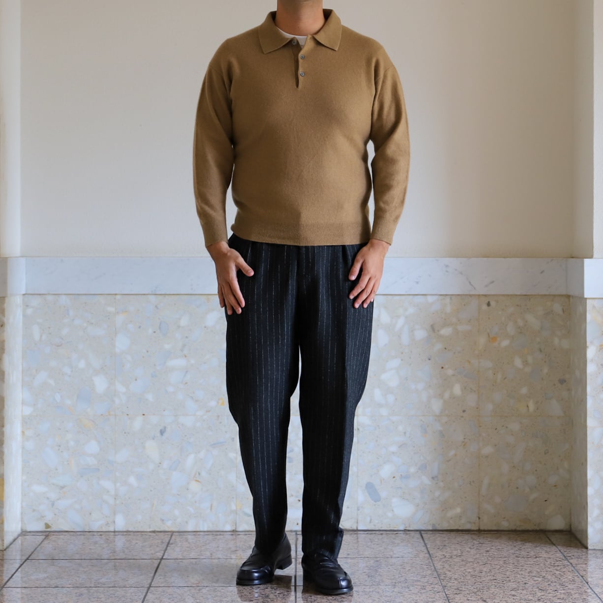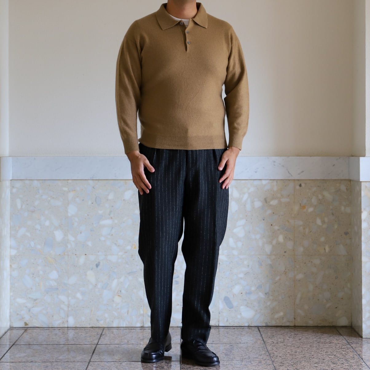 地厚で上質、滑らかなカシミヤ100%の襟付きニットポロシャツです。