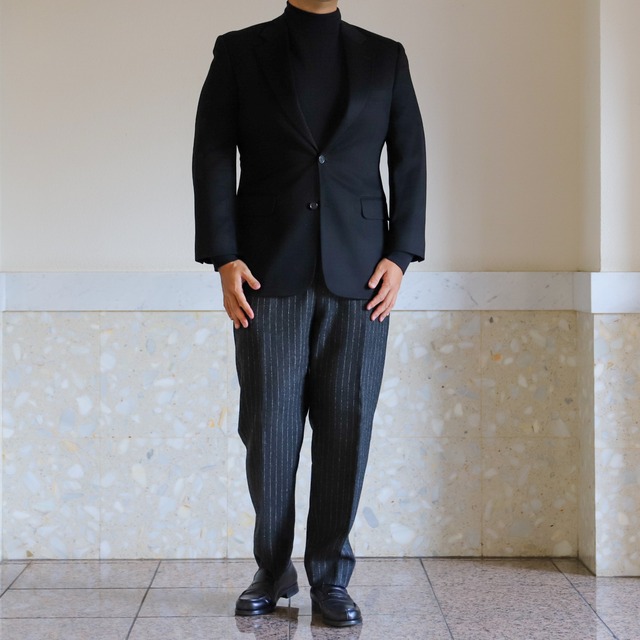フォーマル合わせでも素敵ですが、サラッと羽織ってスラックスやデニム、ミリタリー パンツなどに合わせるのも抜群。