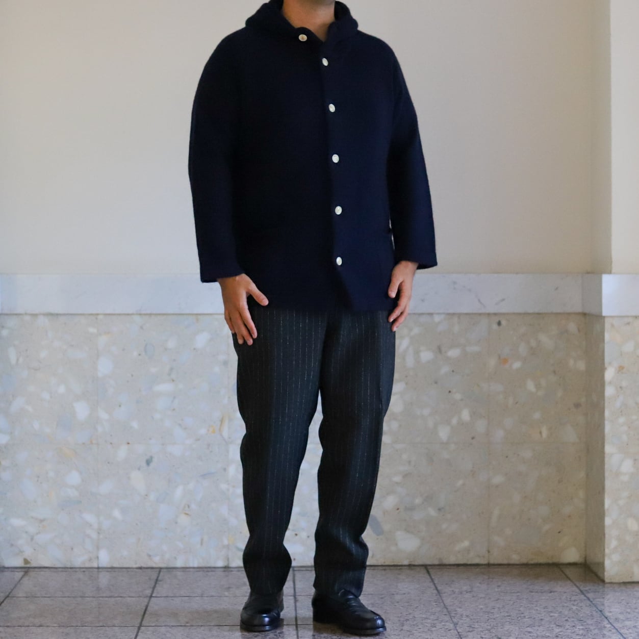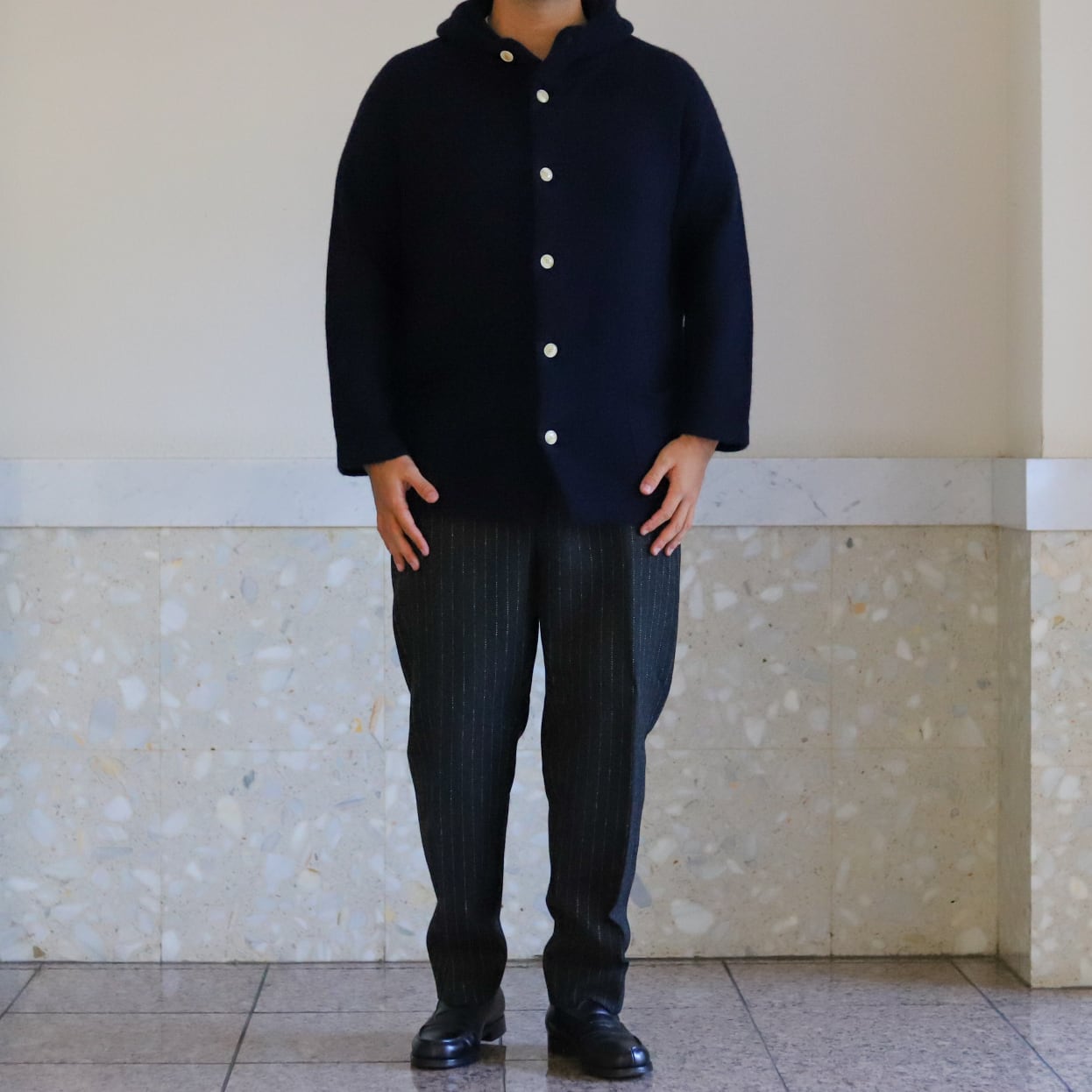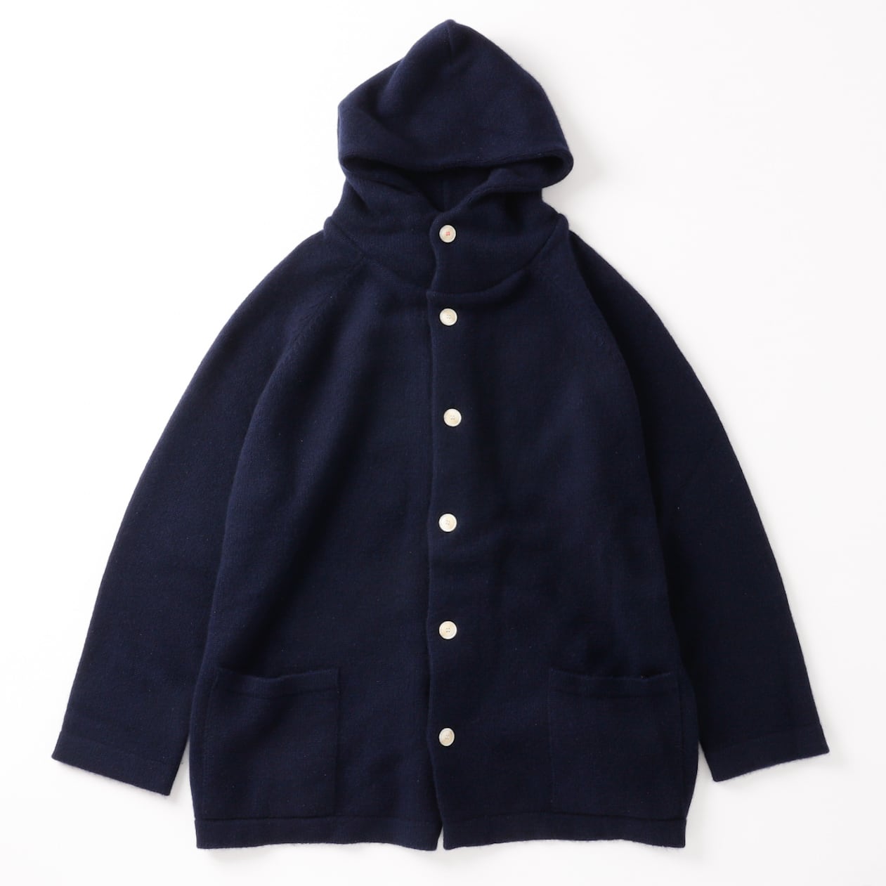 【新品】SUNSHINE+CLOUD MINTENS限定品 Special cashmere Knit hood jacket Big size Made in JAPAN / サンシャインプラスクラウド ビッグサイズ カシミヤ フード ニット セーター ネイビー サイズ5 ビッグサイズ 日本製