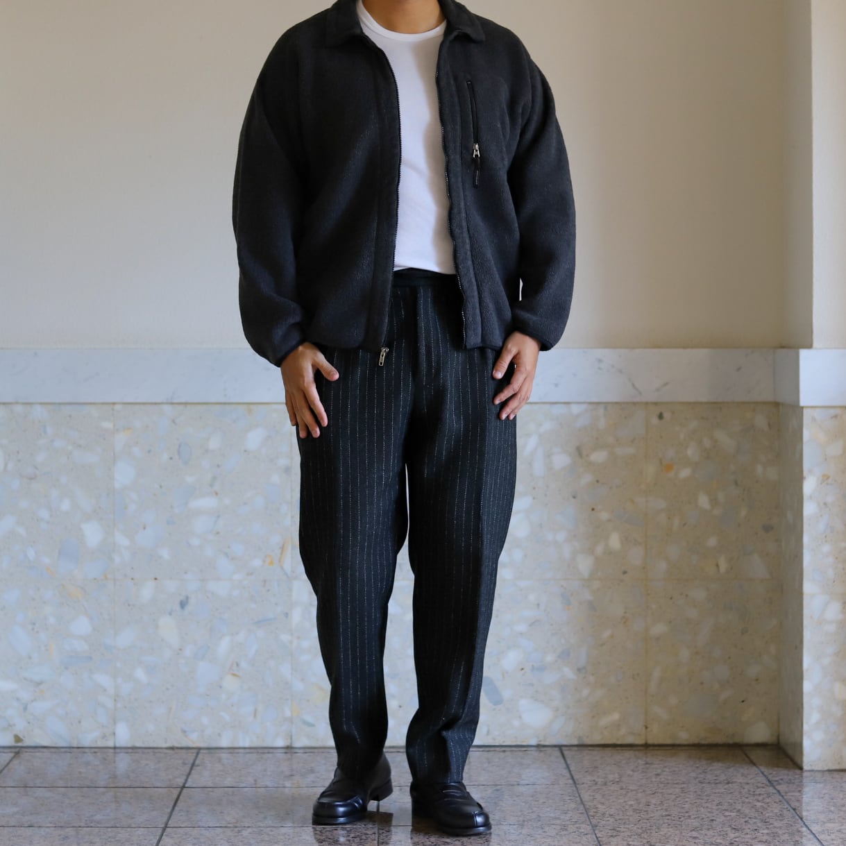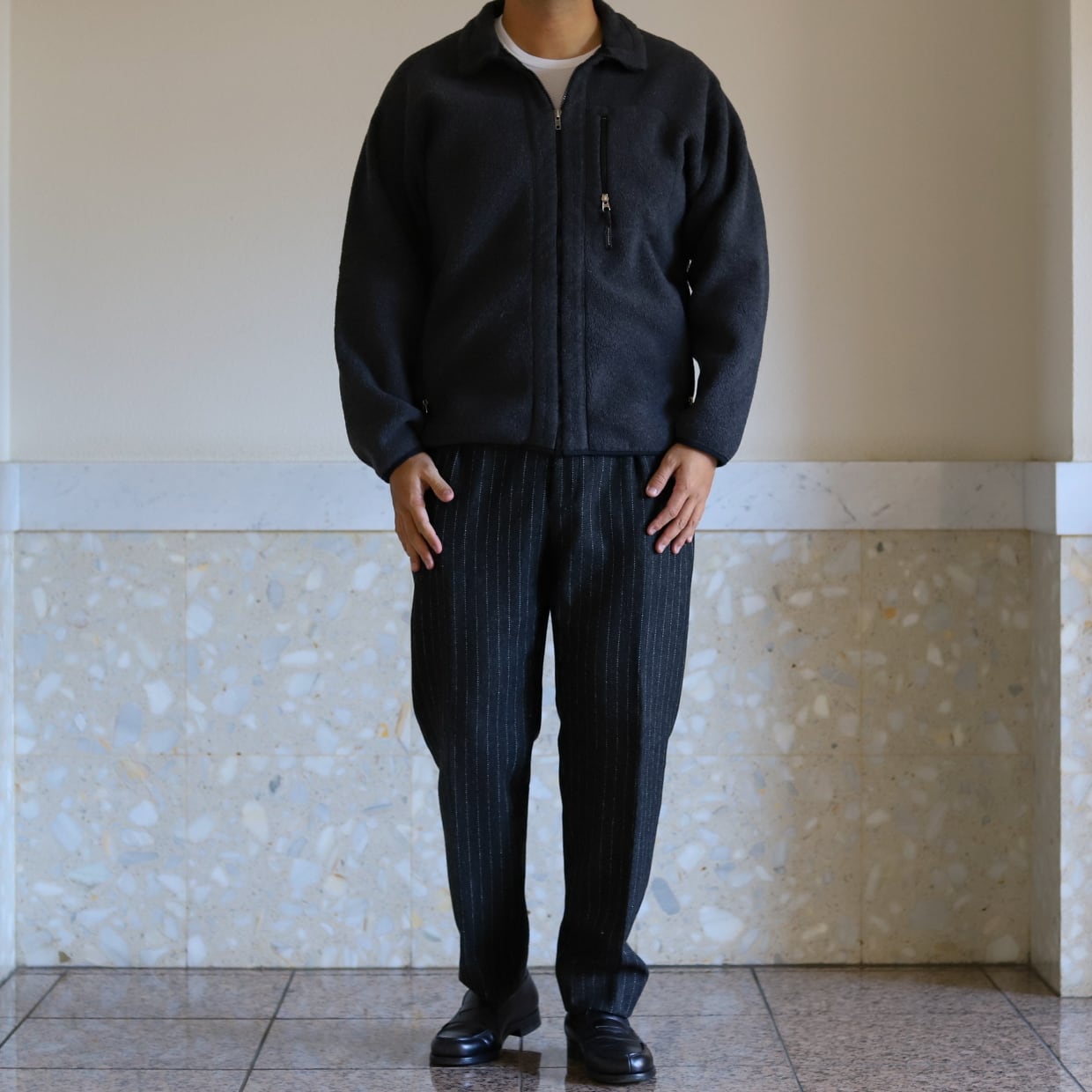 スラックス合わせや、チノパン、ミリタリーパンツ、ローファー合わせ、デニムスタイルにも抜群。