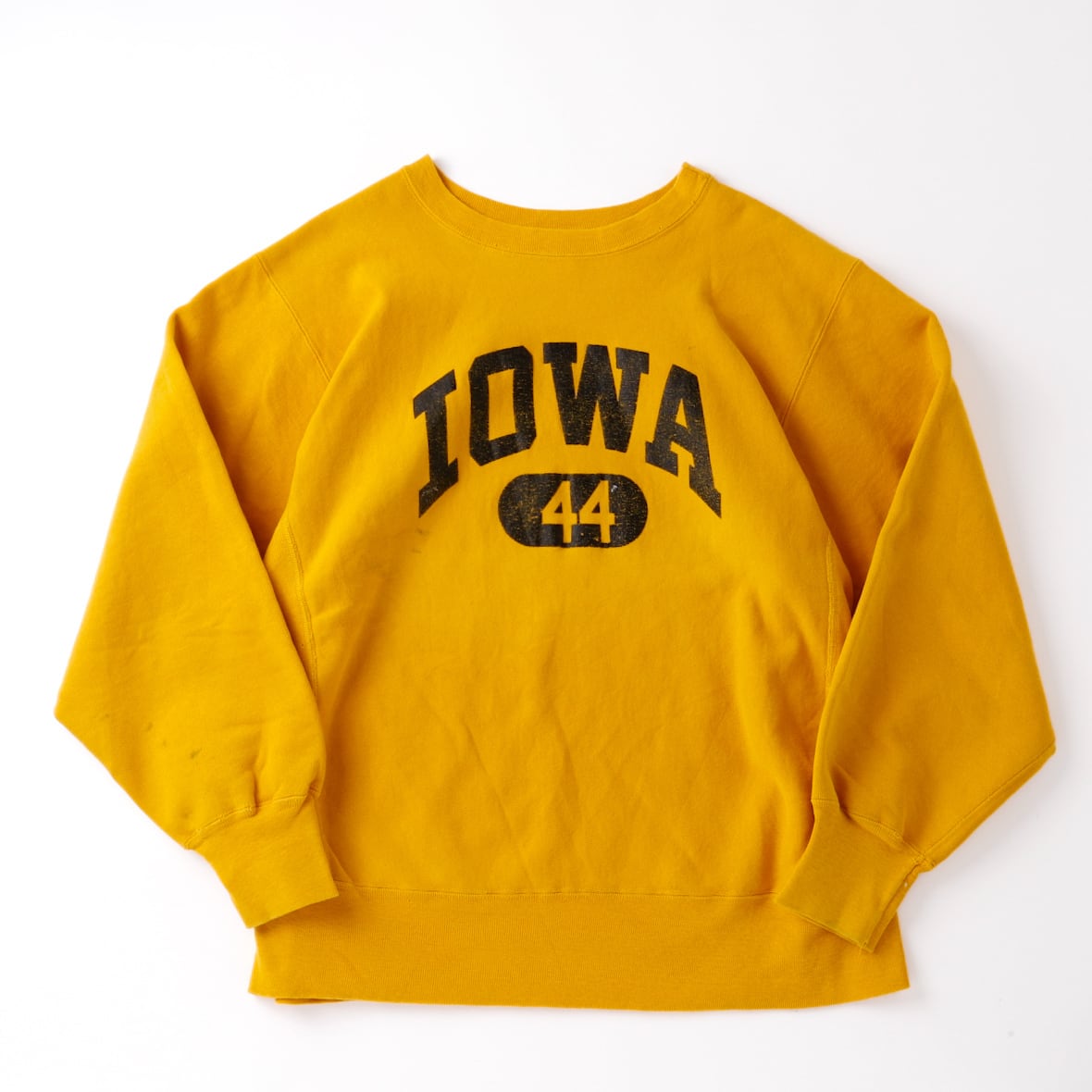 80s champion Reverse Weave Crew "IOWA" Vintage sweat fade yellow made in USA