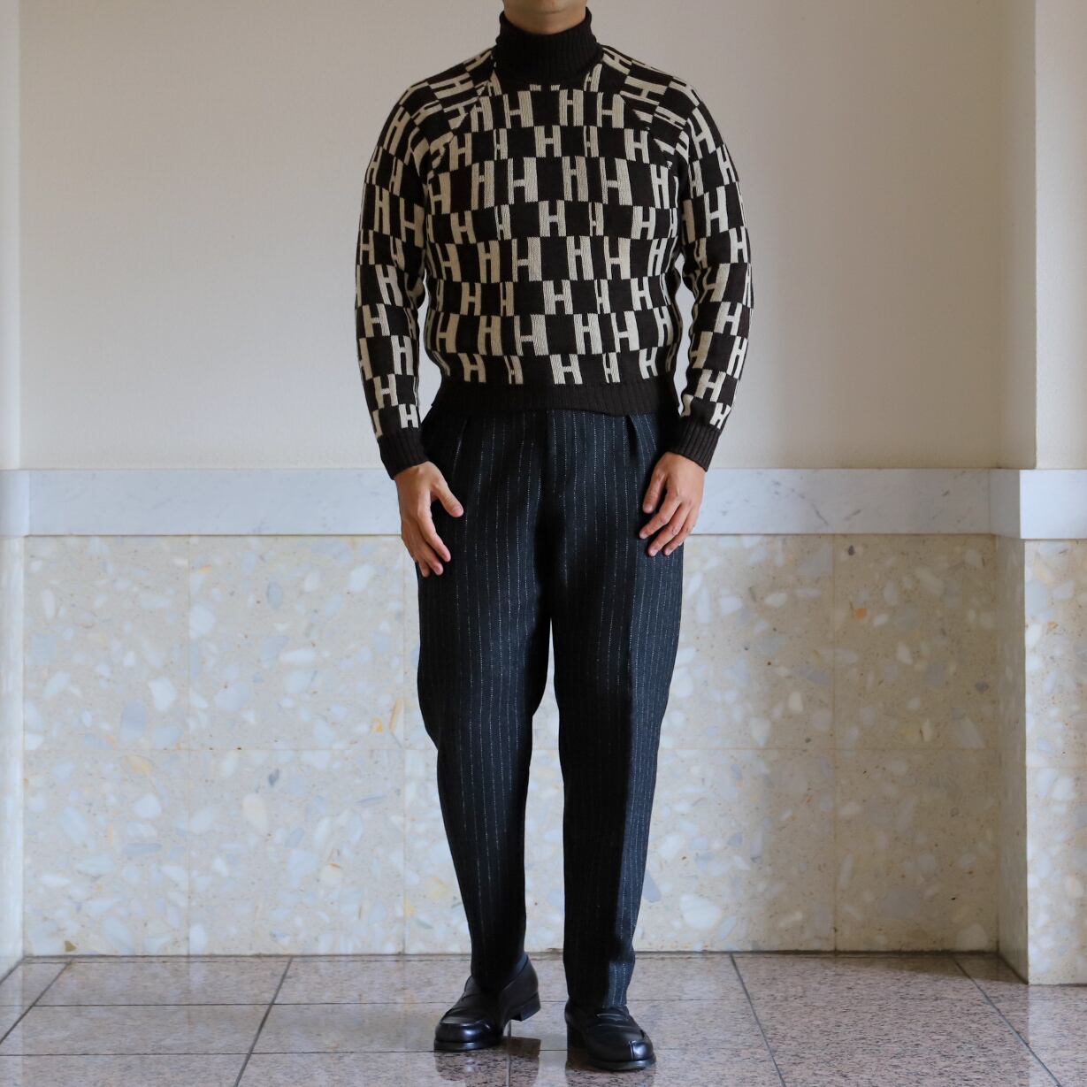 Hermes wool Knit turtleneck sweater made in Italy big size mint condition