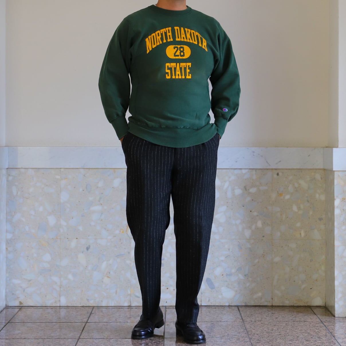 【希少】90s champion Reverse Weave fade green Vintage sweat made in USA "NORTH DAKOTA STATE" /ヴィンテージ チャンピオン リバースウィーブ スウェット USA製 フェード グリーン ノースダコタ州立大学 ビッグサイズ XL