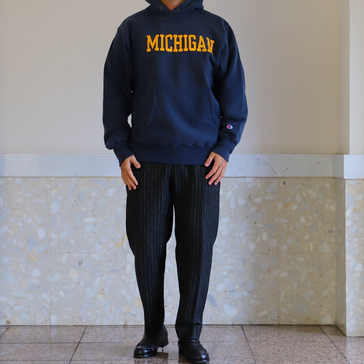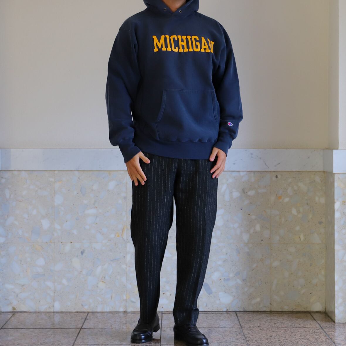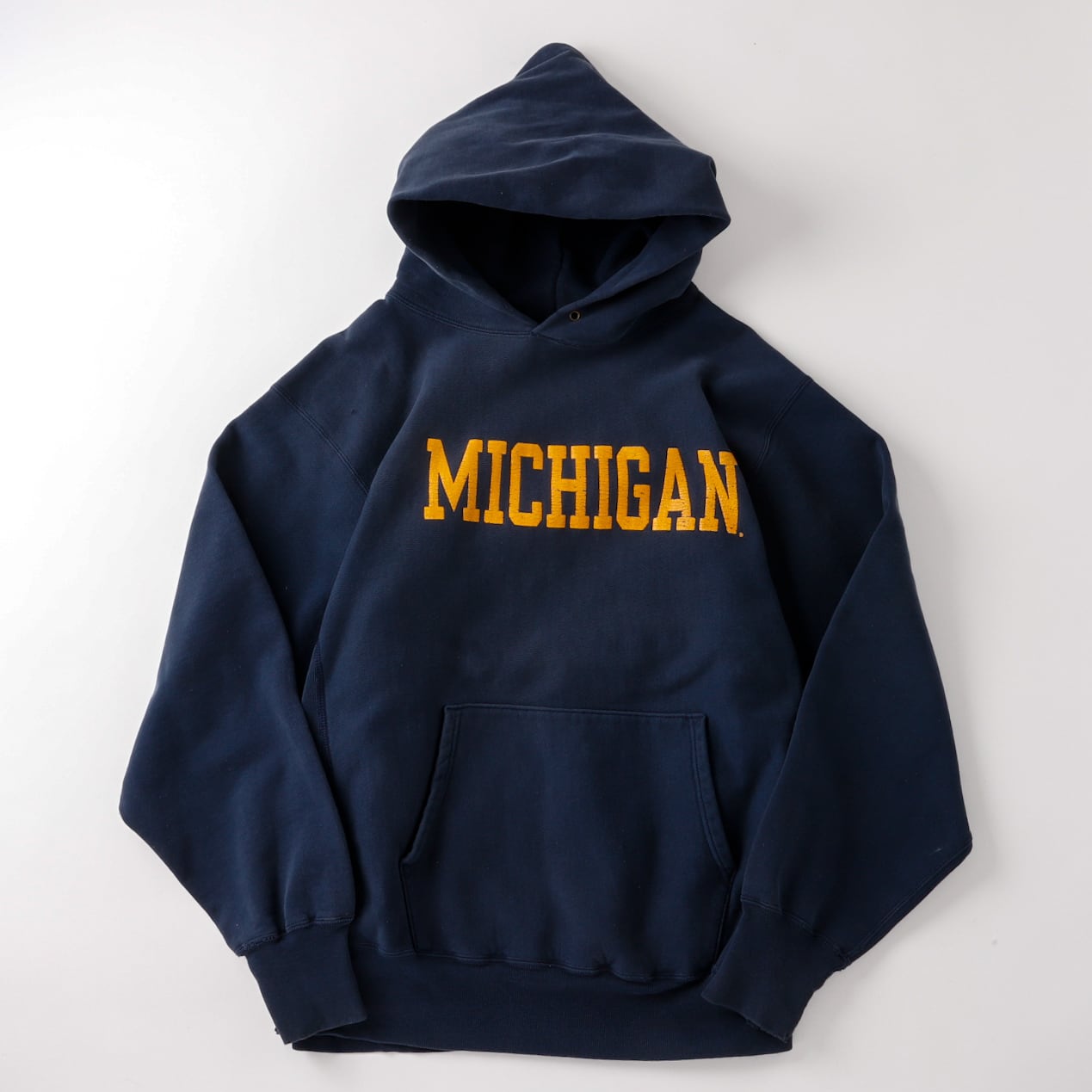 【逸品】champion Reverse Weave hoodie sweat shirt "MICHIGAN" Vintage mint condition /ヴィンテージ チャンピオン リバースウィーブ スウェット パーカー トレーナー ネイビー ミシガン州立大学 ビッグサイズ XL 希少