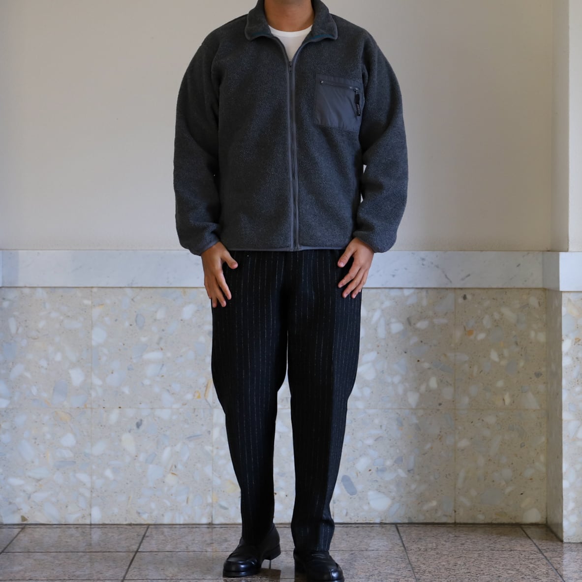 スラックス合わせや、チノパン、ミリタリーパンツ、ローファー合わせ、デニムスタイルにも抜群。