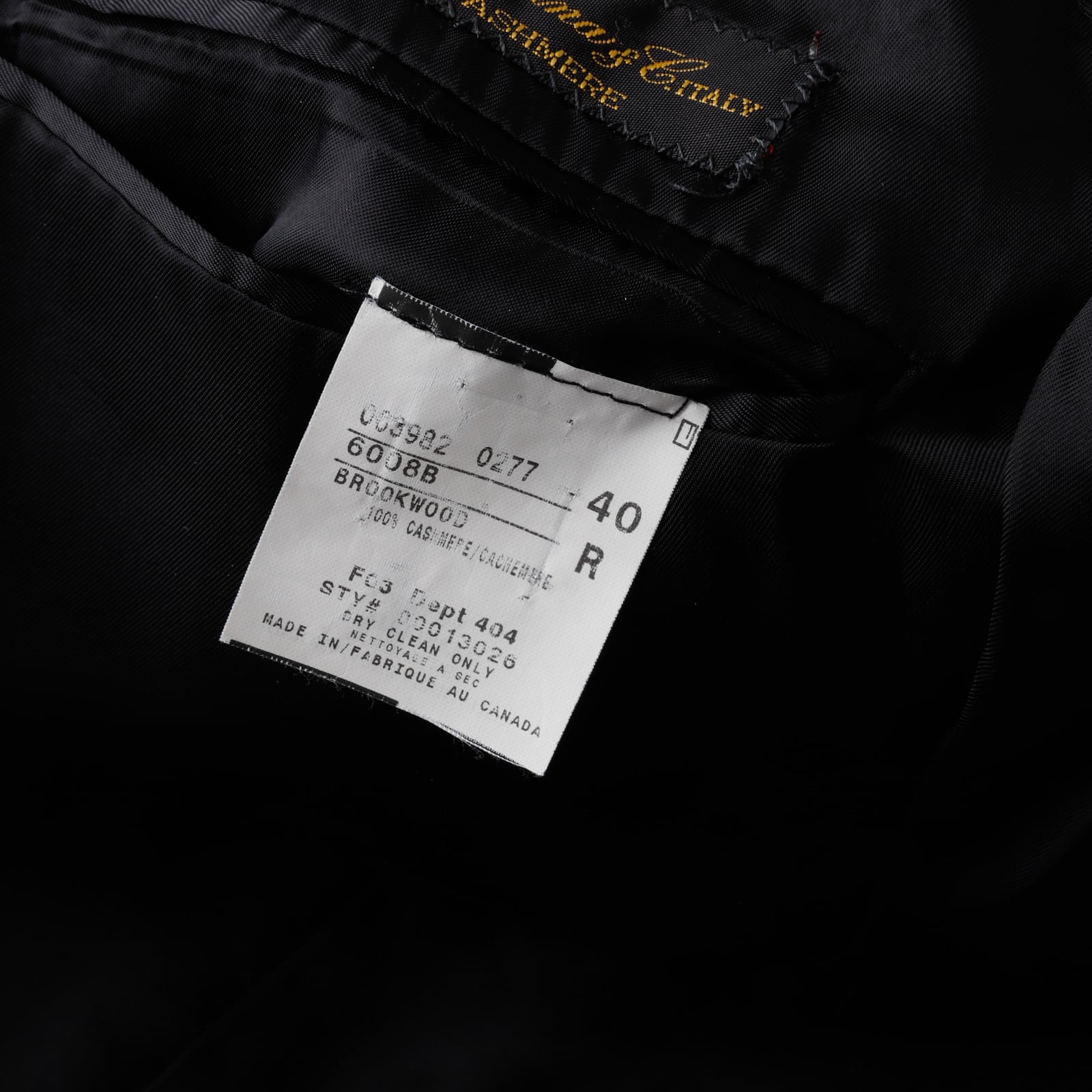ロロピアーナ製 カシミヤ素材100%ブルックスブラザーズのカナダ製ブラックブレザー。
