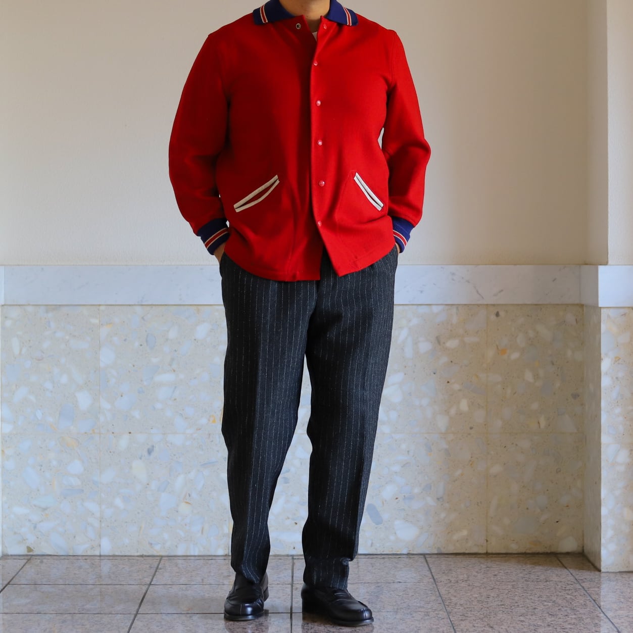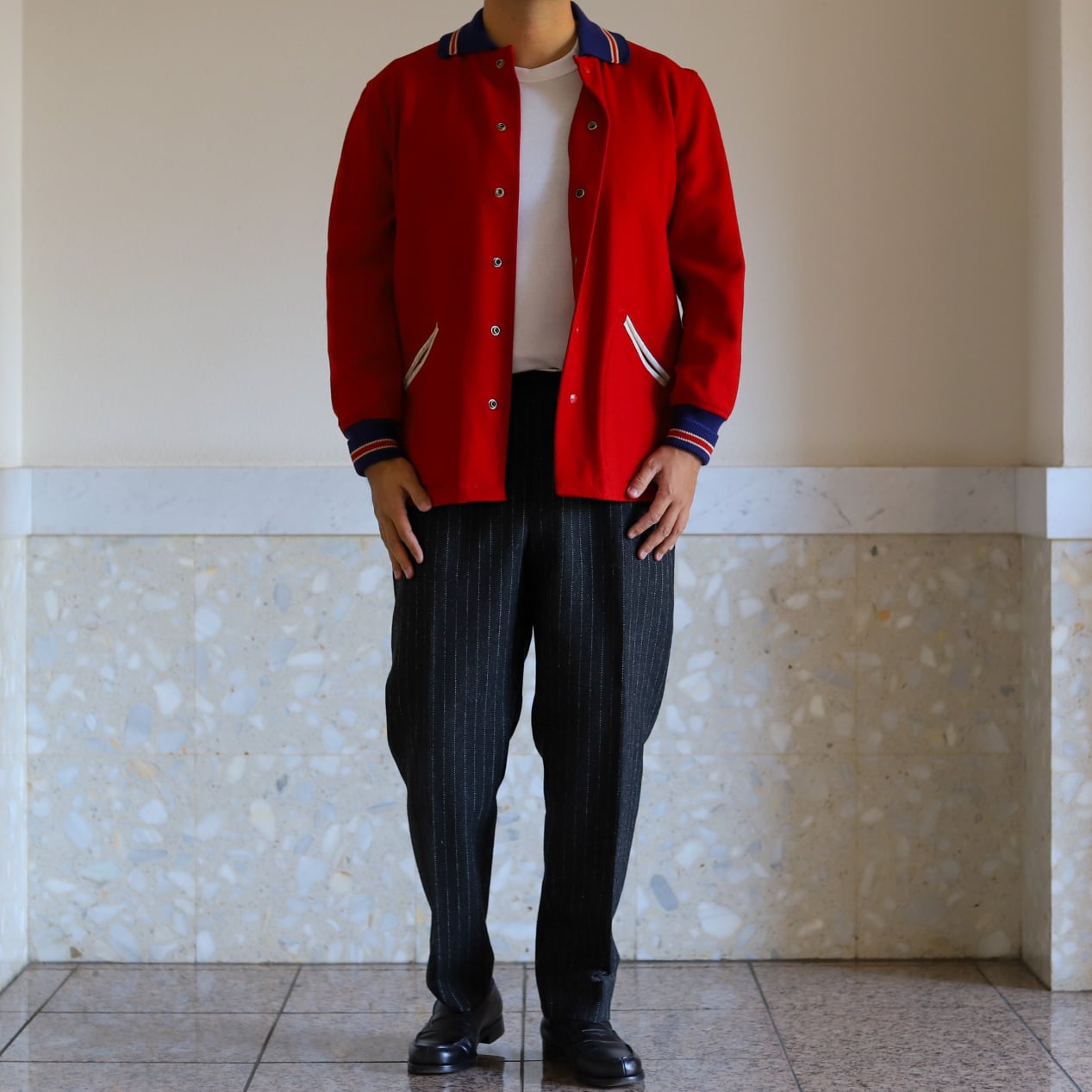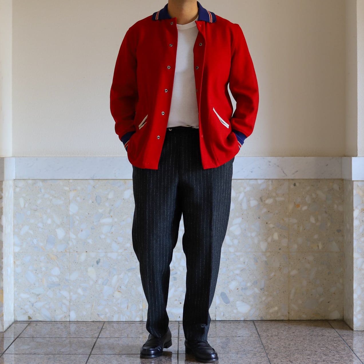 【極美品】40s special vintage Wool Varsity Jacket stadium jumper made in USA big size size44 red "HL WHITING" / 30年代 ヴィンテージ ゲーム ウール スタジャン バーシティジャケット スタジアムジャンバー ブルゾン 赤 カレッジ サイズ44 実寸XL USA製 ほぼデッドストック 希少