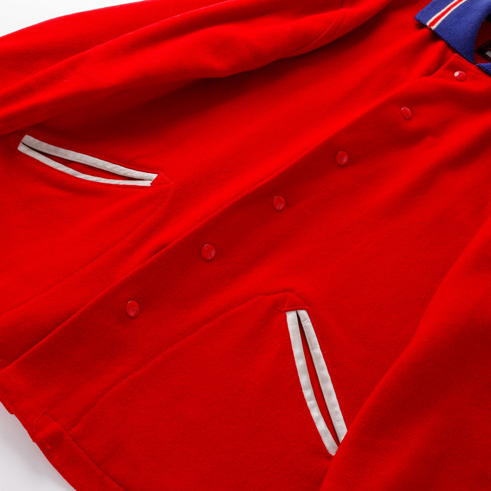 古い年代のスナップボタン、配色、ポケット縁のレザー使用が当時のトレンドです。