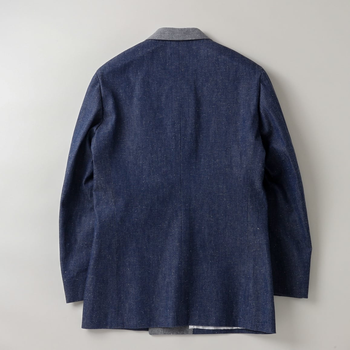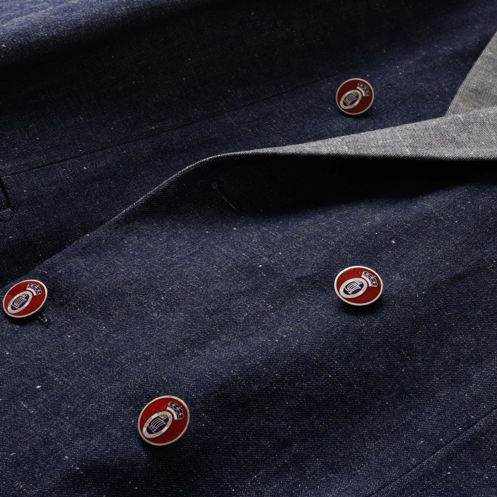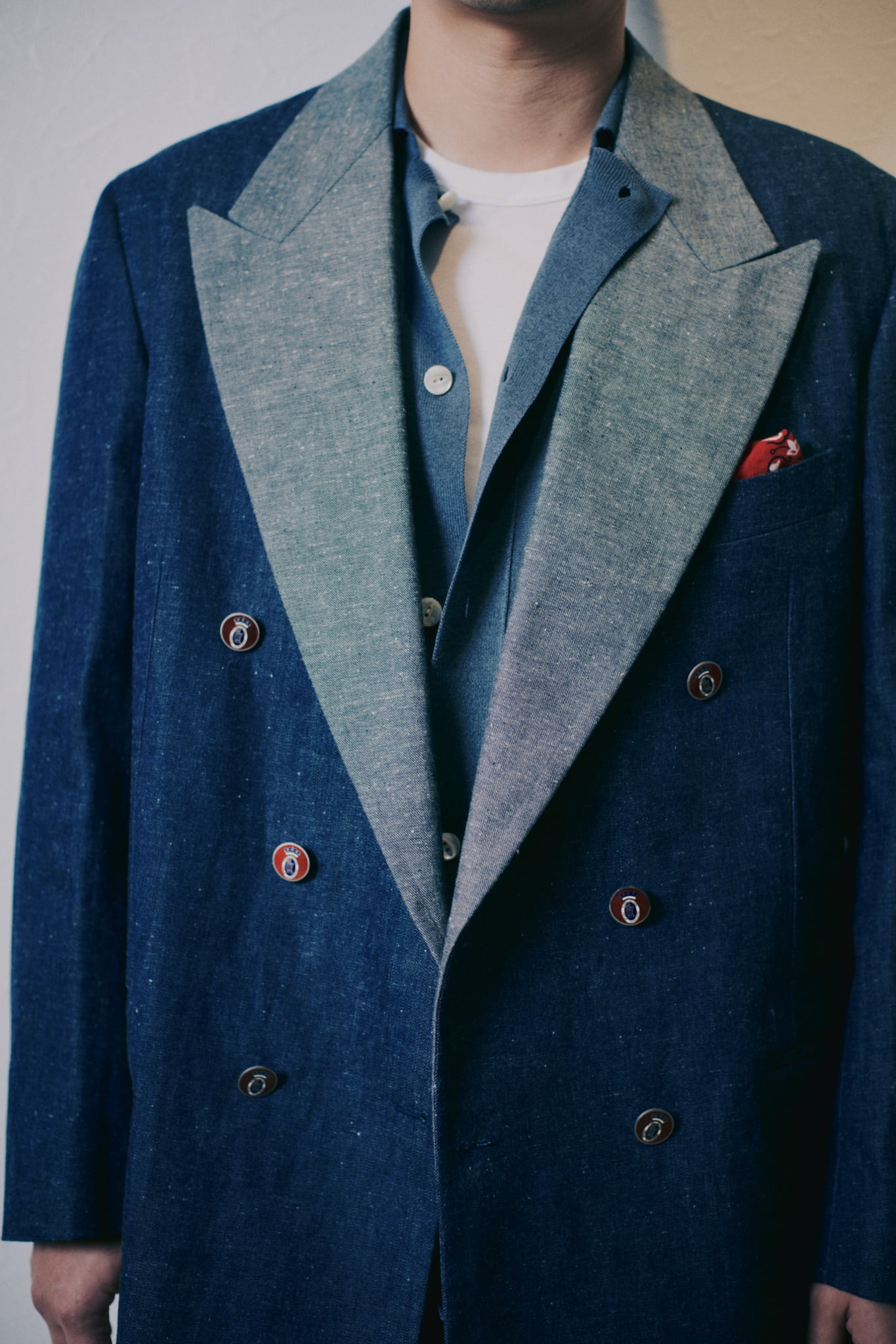 こちらは希少なデッドストックのデニム生地で作られたタキシードジャケット。