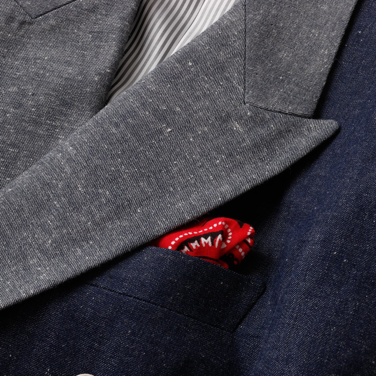 ポケットチーフの代わりに、70年代のUSA製バンダナを備付けにしております。