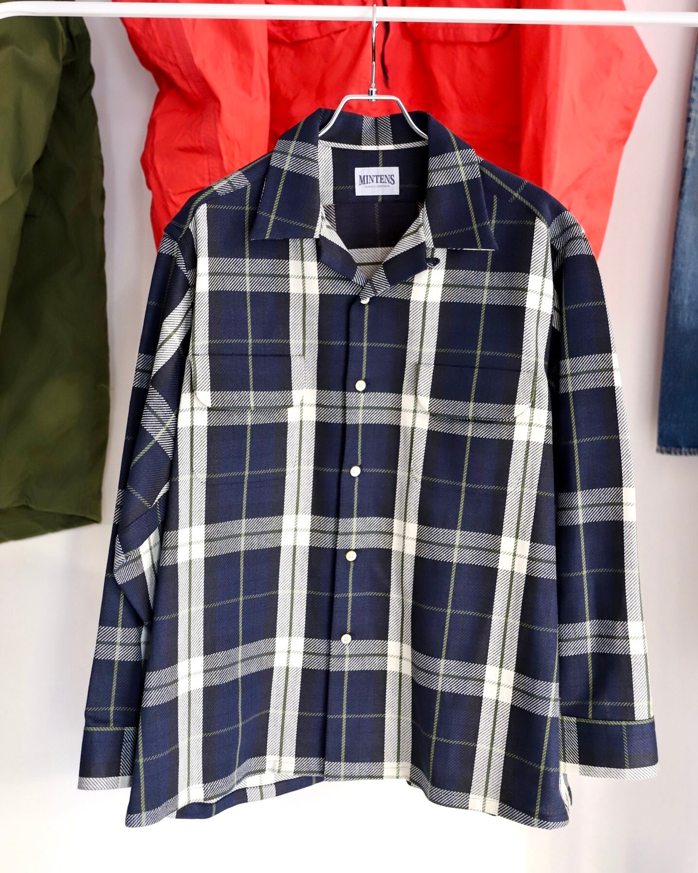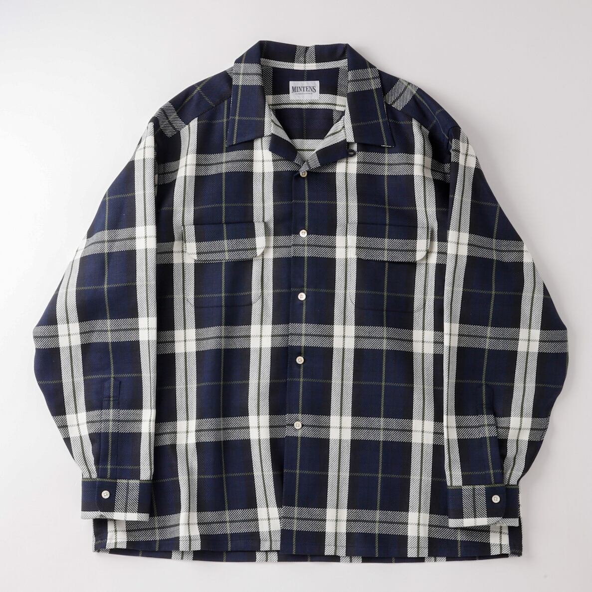 【新品】MINTENS 1960s vintage cotton heavy flannel shirts made in JAPAN fabrics made in JAPAN/ 日本製 ヴィンテージ生地 コットン ヘビー フランネル オープンカラー シャツ オリジナルブランド 1960年代シルエット ネイビー サイズ①、②