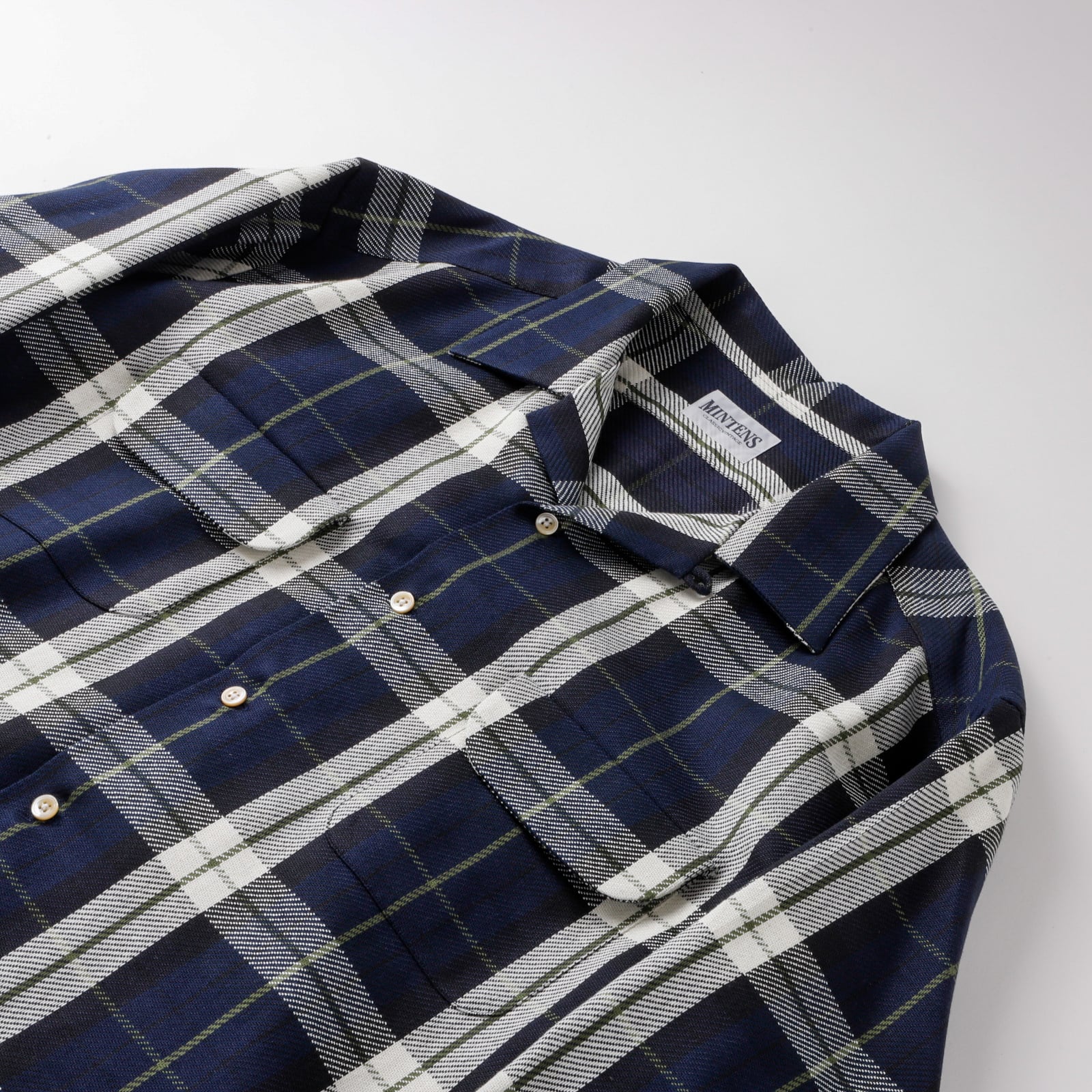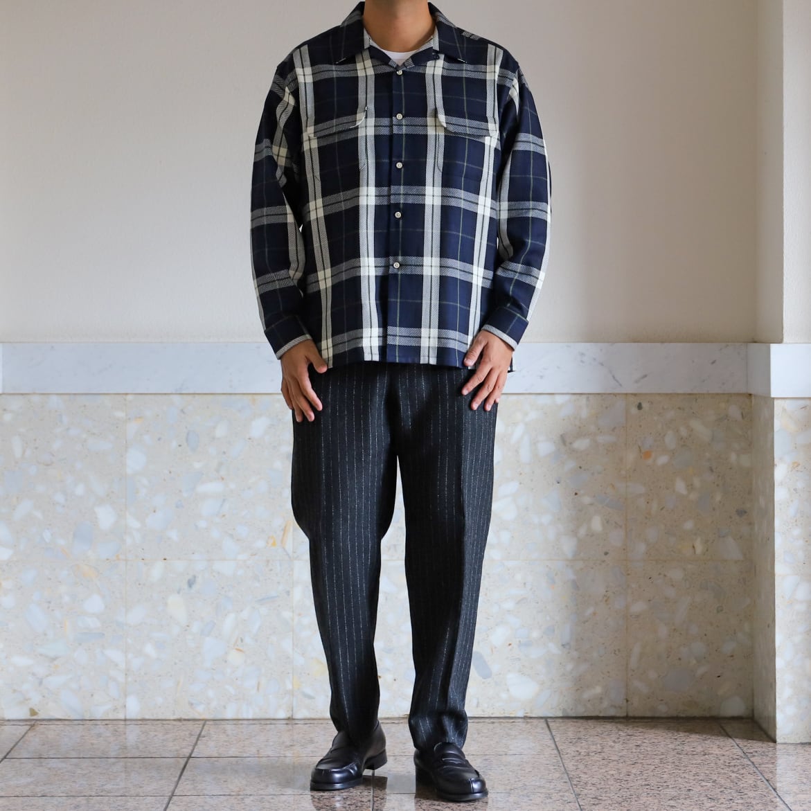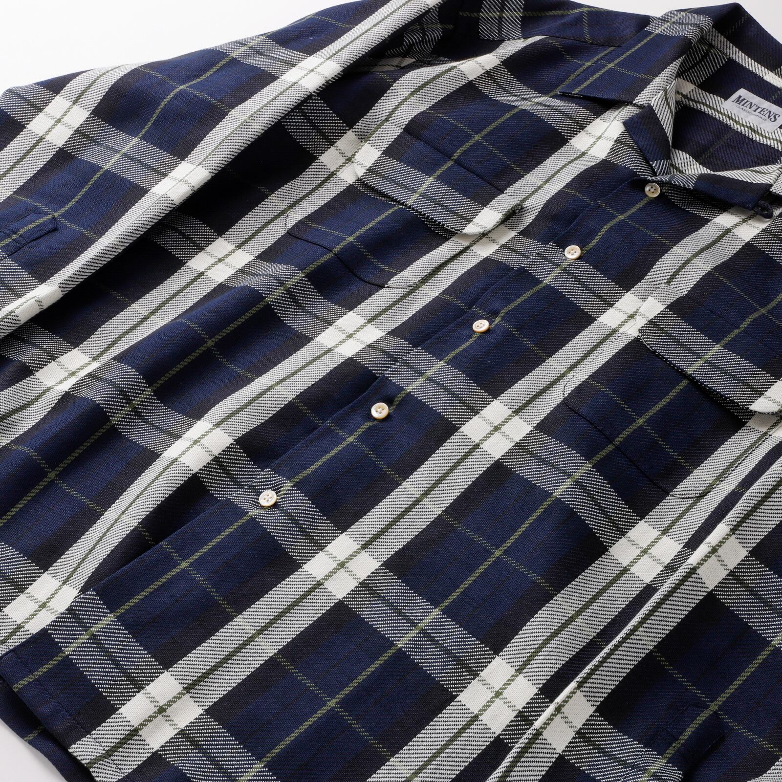 MINTENS 1960s vintage cotton heavy flannel shirts made in JAPAN fabrics made in JAPAN 日本製 ヴィンテージ生地 コットン ヘビー フランネル オープンカラー シャツ ネイビー