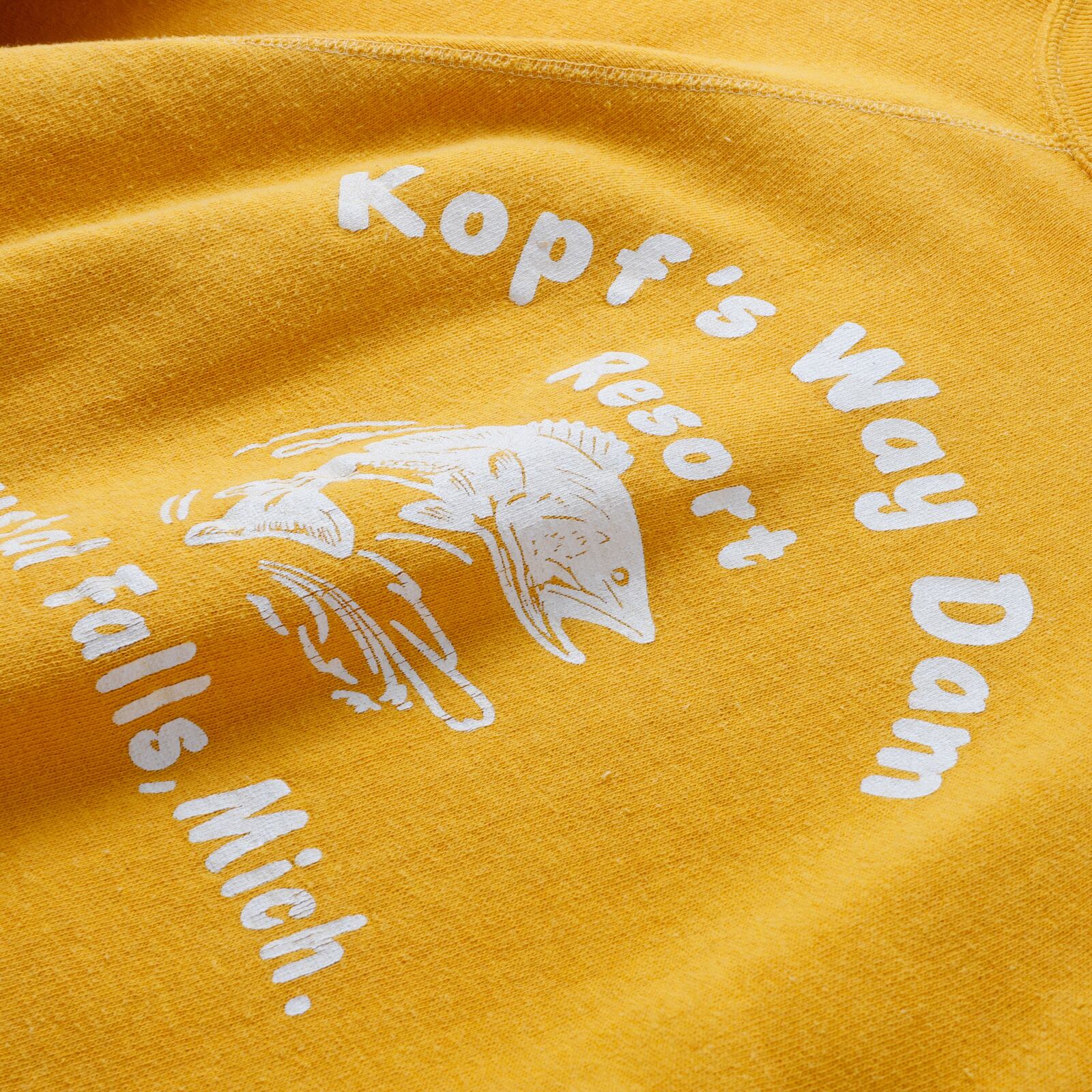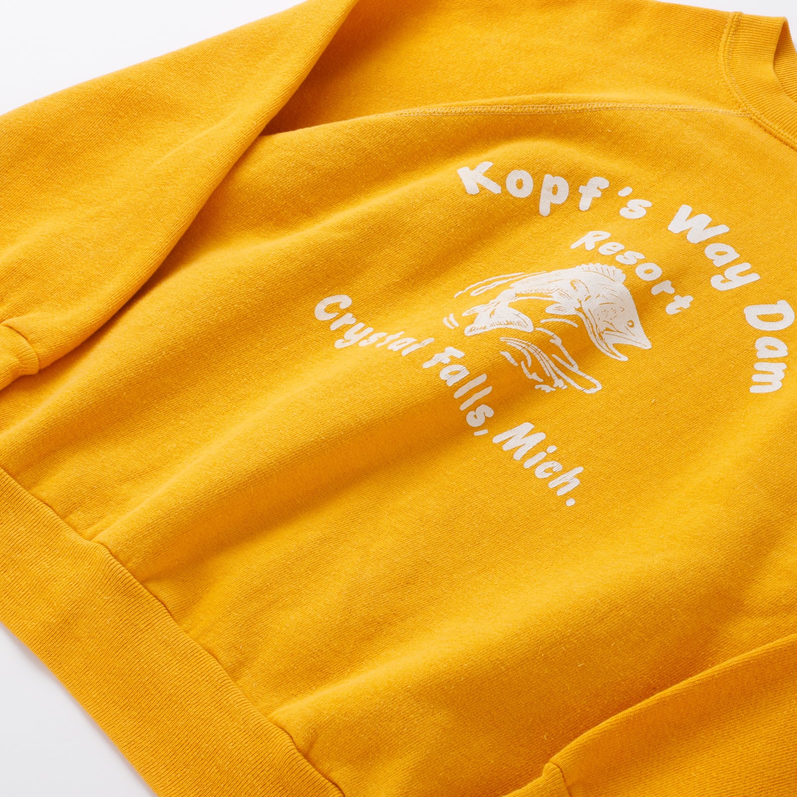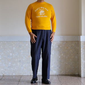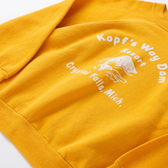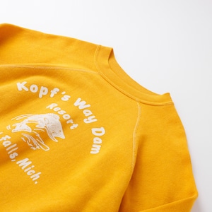 【極美品】60s special vintage raglan sweat shirt "Kopf's Way Dam" made in USA fade yellow about size42 big size / 60年代 ヴィンテージ 長袖 ラグラン袖 スウェットシャツ トレーナー USA製 実寸サイズ42 実寸L ビッグサイズ フェード イエロー