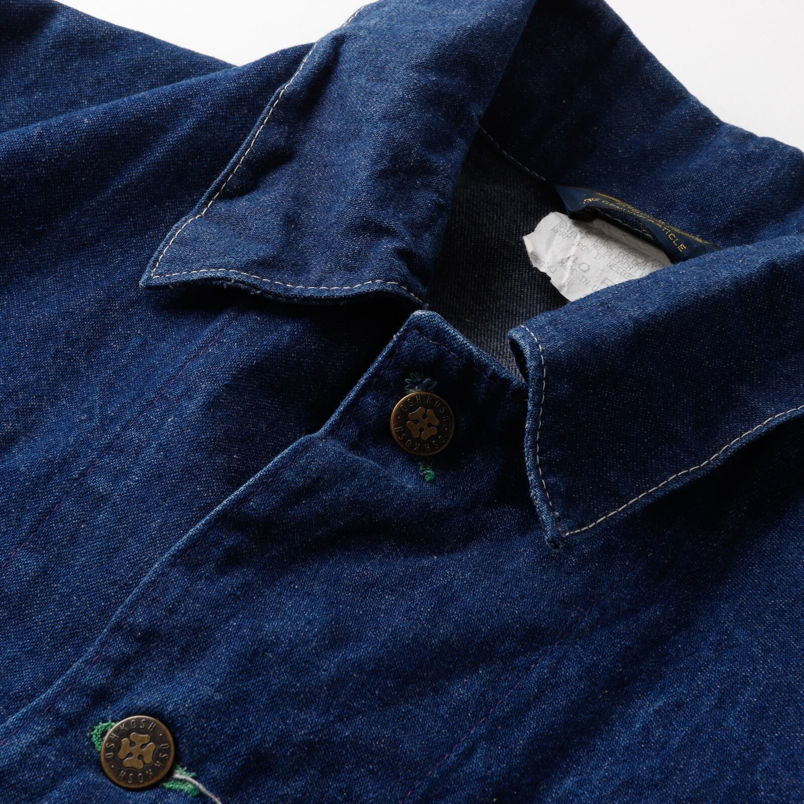 【極美品】70s special vintage Denim coverall jacket "OSHKOSH" about size40 Big size made in USA one wash mint condition / 70年代 ヴィンテージ デニム カバーオール ジャケット ビッグサイズ サイズ40 実寸L 濃紺 USA製 ミントコンディション ワンウォッシュ