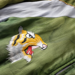 【美品】50s special souvenir jacket vintage U.S. military satin fabric blouson reversible made in JAPAN about size42(ML) / 50年代 ヴィンテージ スカジャン スーベニア ジャケット リバーシブル サテン素材 アメリカ軍 ミリタリー 日本 駐留 ビッグサイズ 実寸42 ML程度 希少 ジャンパー T.T.S ジップ 激レア