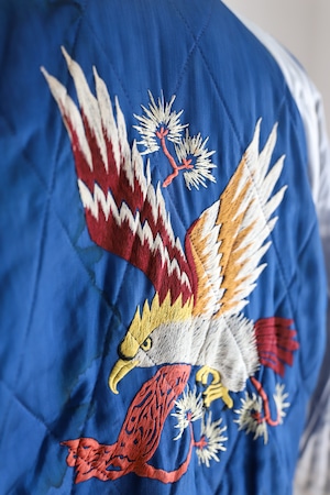スーベニアジャケット、通称「スカジャン」とは戦後間もない頃、駐留していたアメリカ軍兵士の記念品として、オリエンタルな柄や兵士の所属していた部隊などをジャケットに刺繍したのが始まりです。