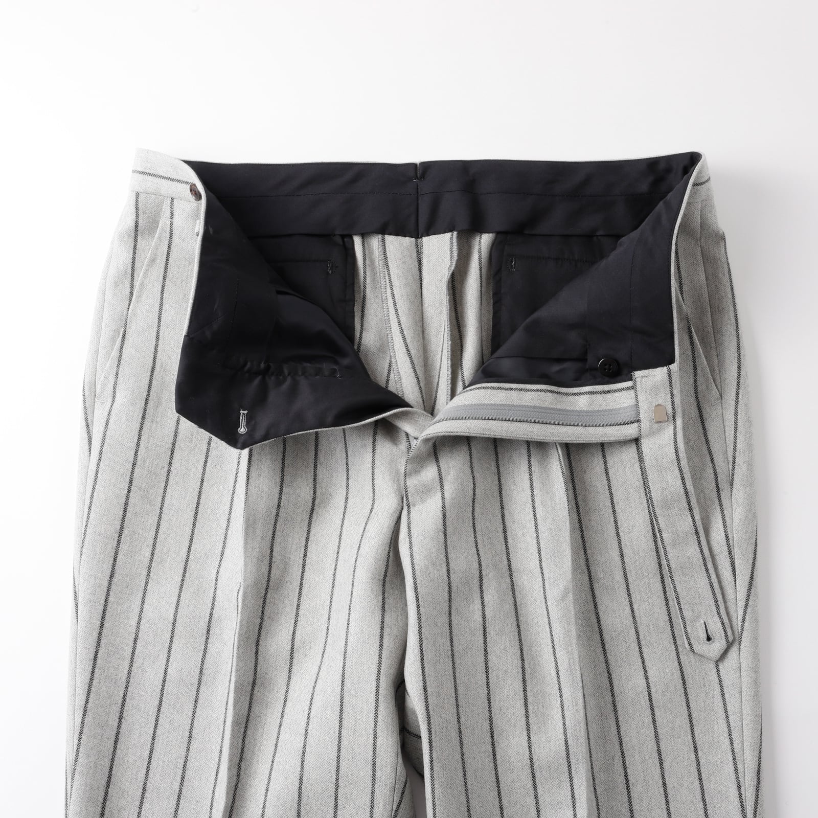 【新品】MINTENS Vintage made in Swiss Fabric special flannel wool herringbone slacks tuck pants W36 made in JAPAN / 70年代 スイス製 ヴィンテージ生地を使用した スラックス タック パンツ ベルトレス フランネル ウール ヘリンボーン ストライプ W36 グレー 日本製 オリジナルブランド