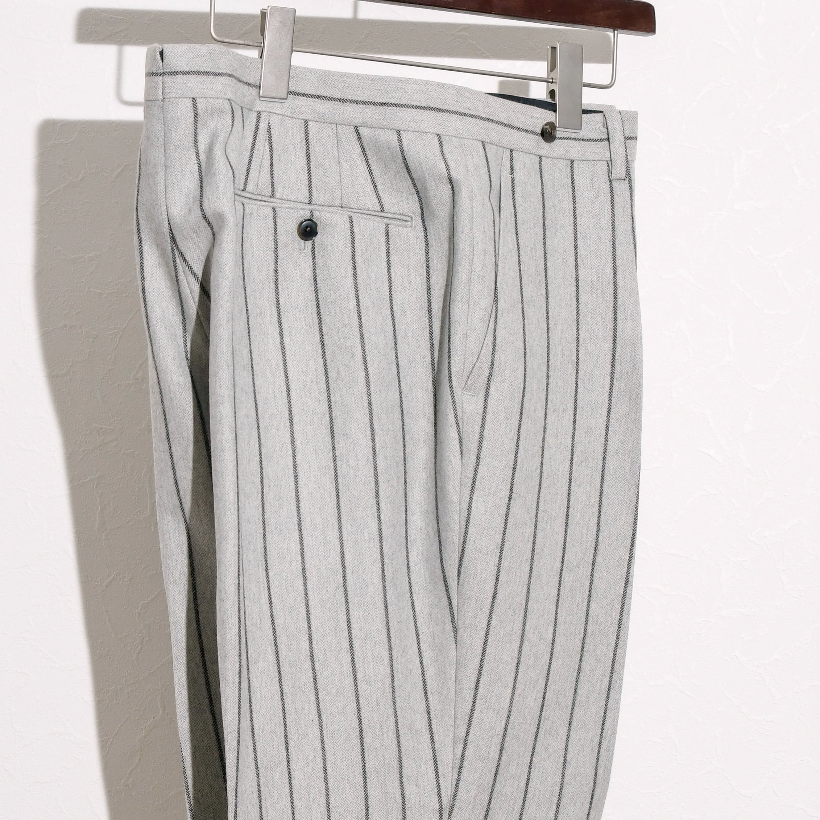 ベルトレス フランネル ウール ヘリンボーン ストライプ