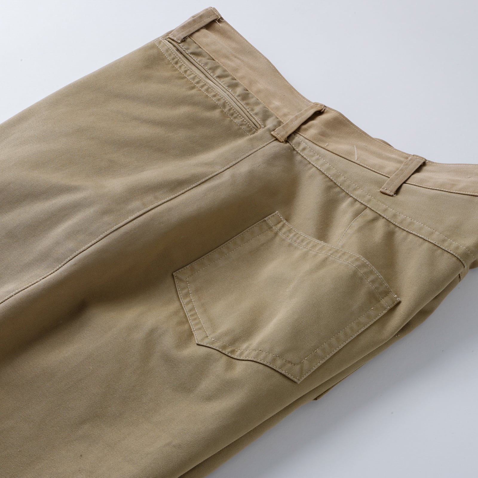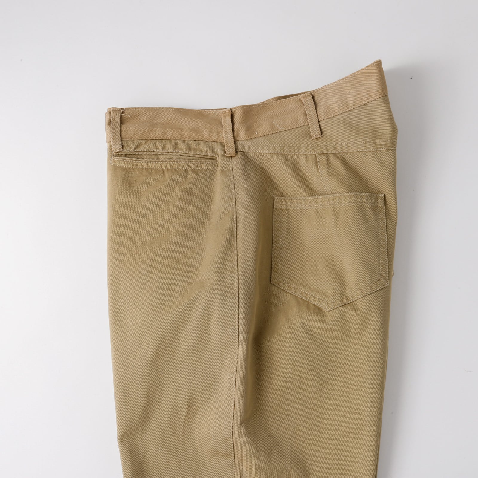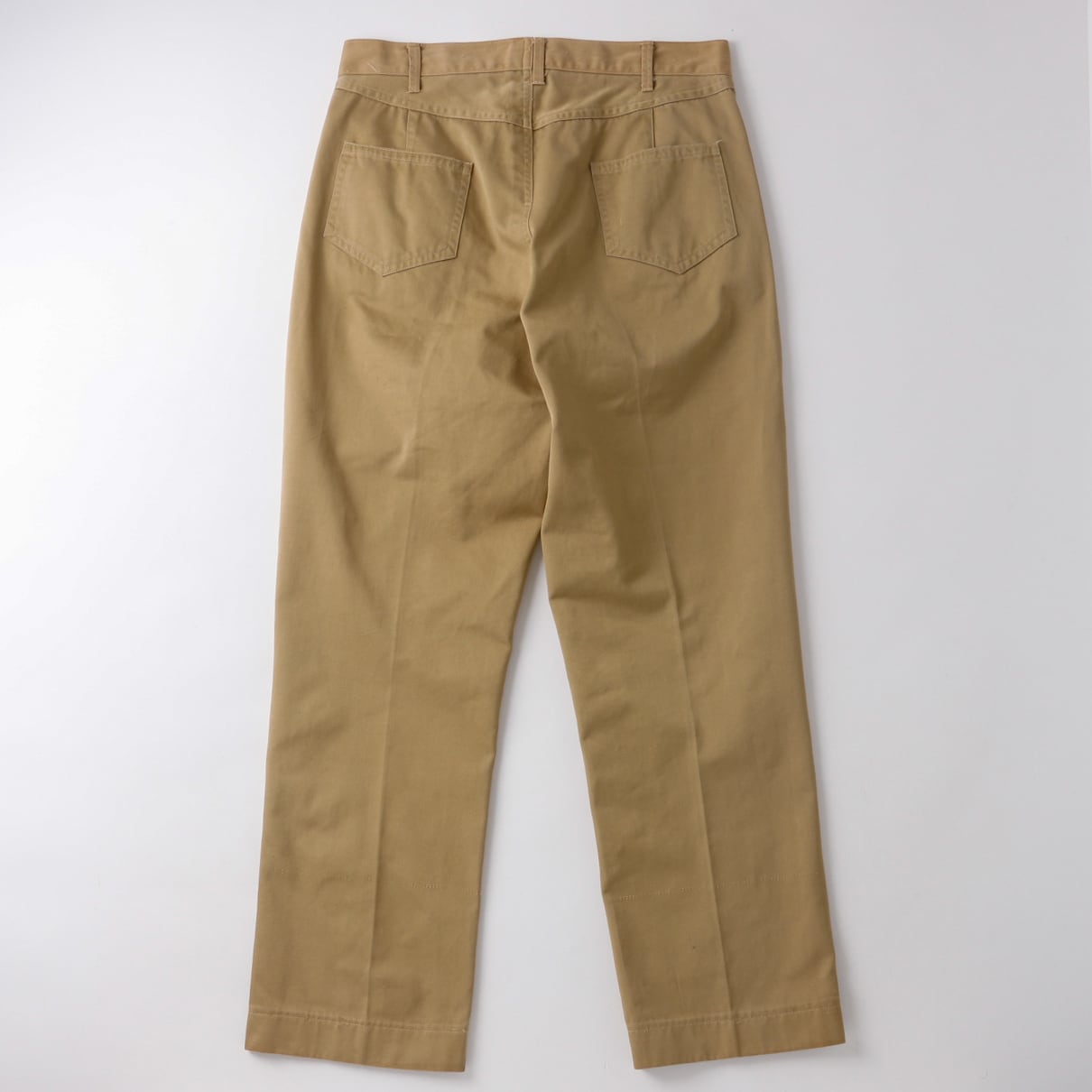 40年代アメリカ軍、海軍などに採用されていたアーミーコットンクロス生地を使用して縫製されたチノパンです。