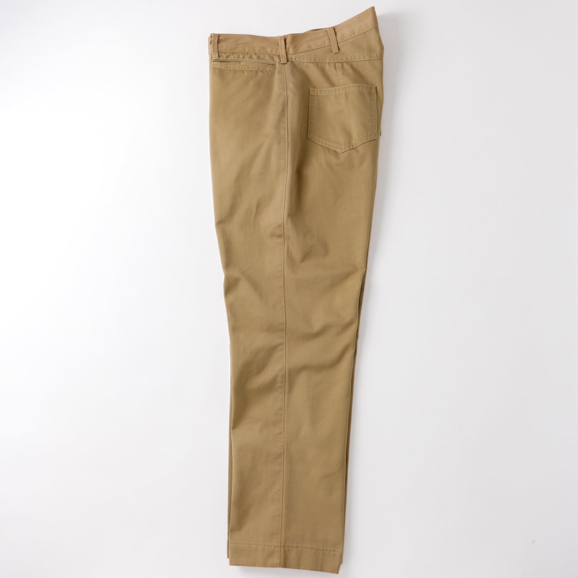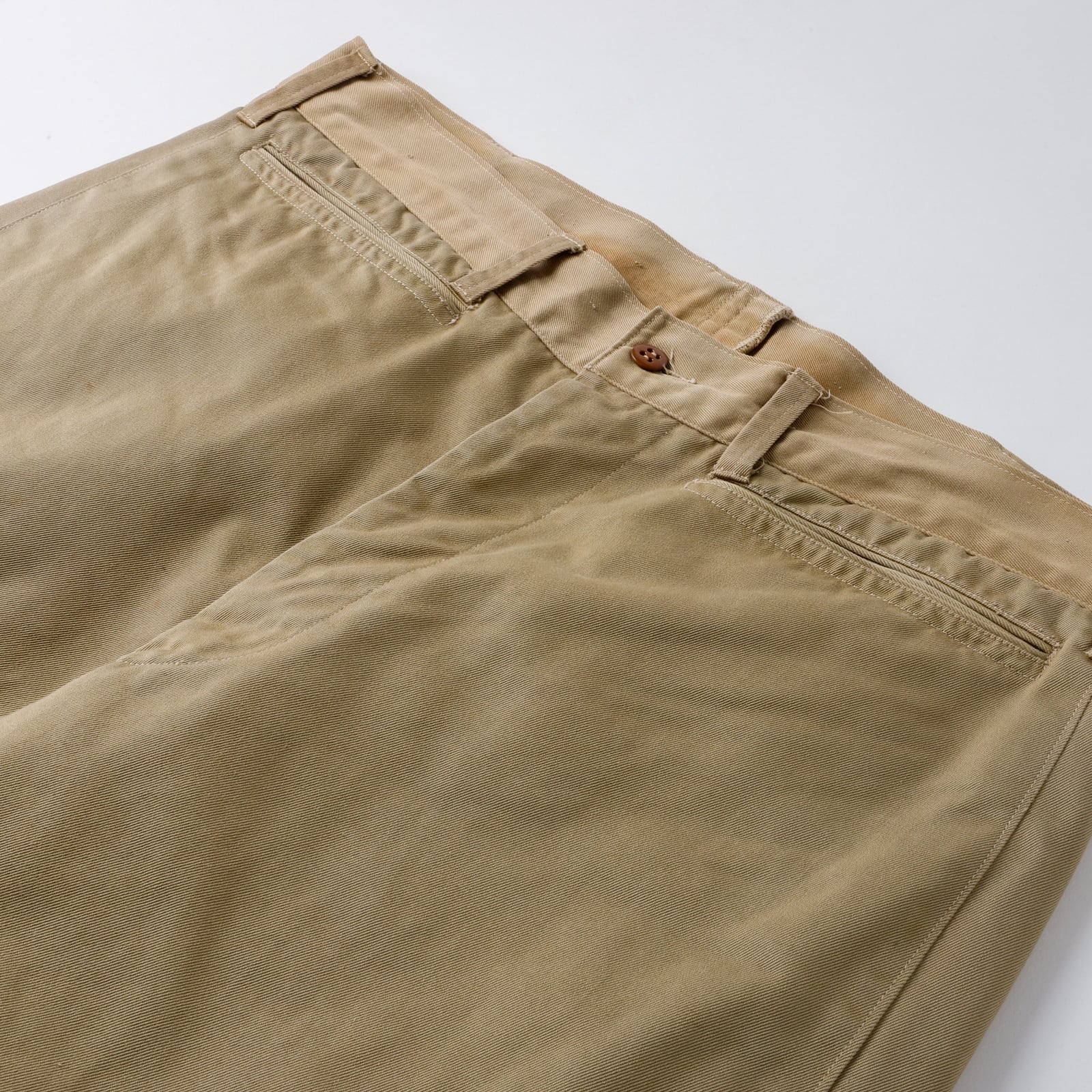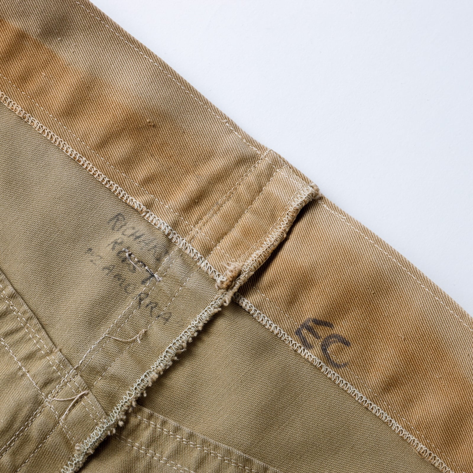 40年代アメリカ軍、海軍などに採用されていたアーミーコットンクロス生地を使用して縫製されたチノパンです。