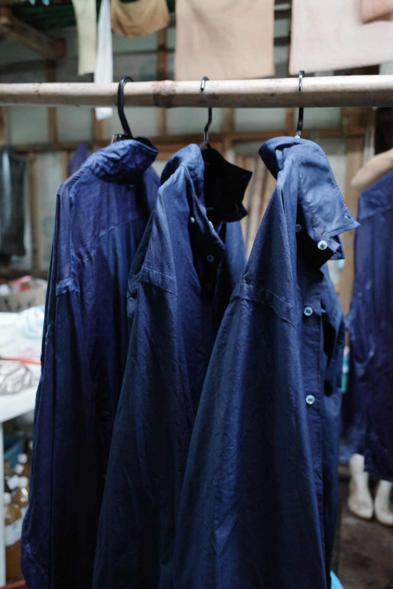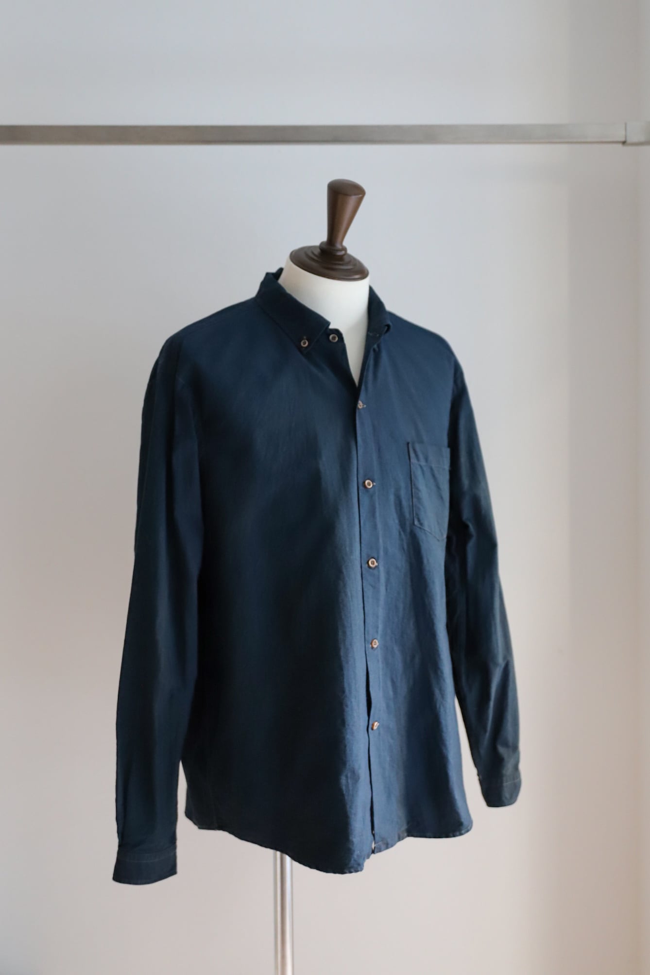 先日まで完売していた、泥藍染のボタンダウンシャツが再入荷。