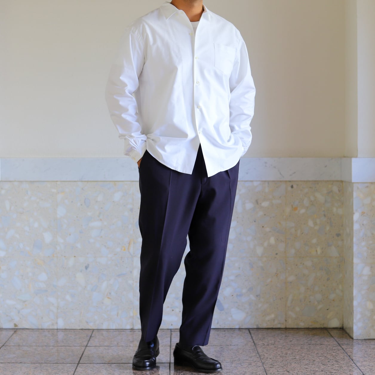 ゆったりとしたシルエットになりますので、堅苦しくならず、リラックスした装いになります。