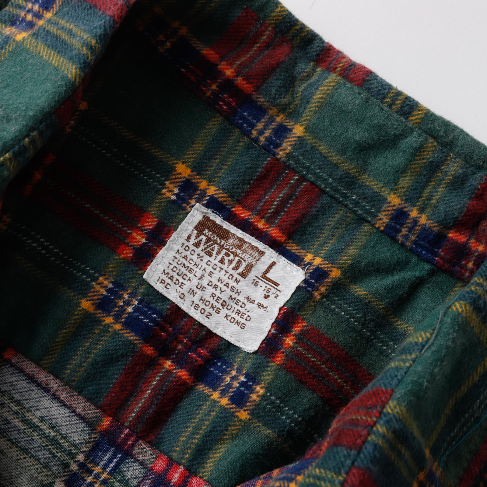 【極美品】70s Vintage cotton check flannel shirt big size mint condition / 70年代 ヴィンテージ ネルシャツ コットン素材 ビッグサイズ サイズ16H 実寸L 香港製