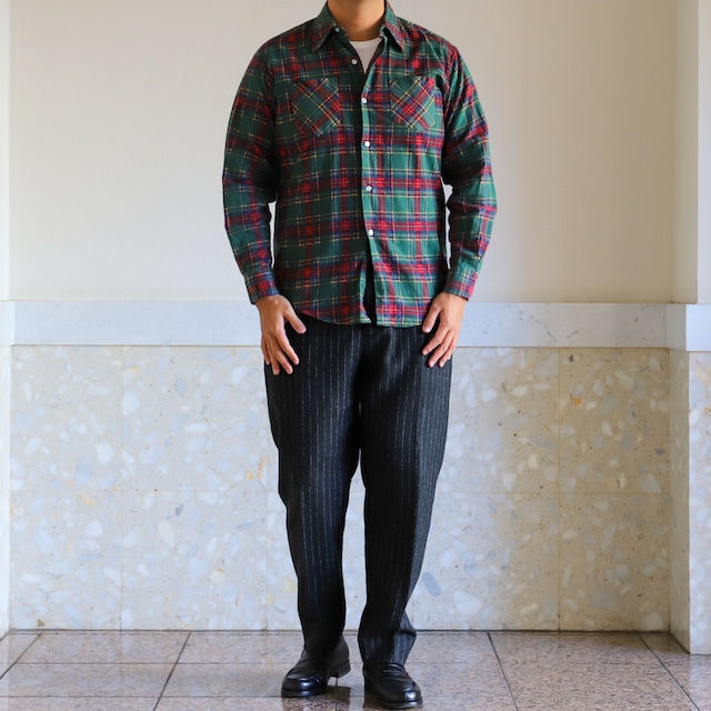 70s Vintage cotton check flannel shirt big size mint condition
