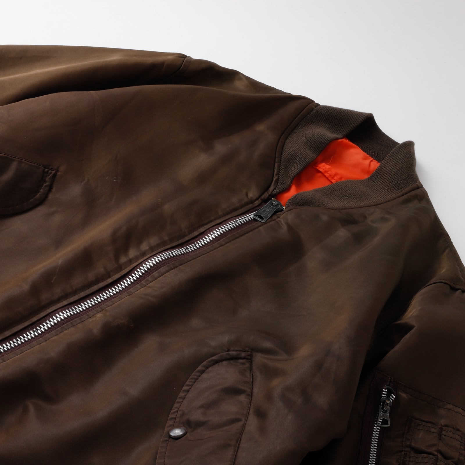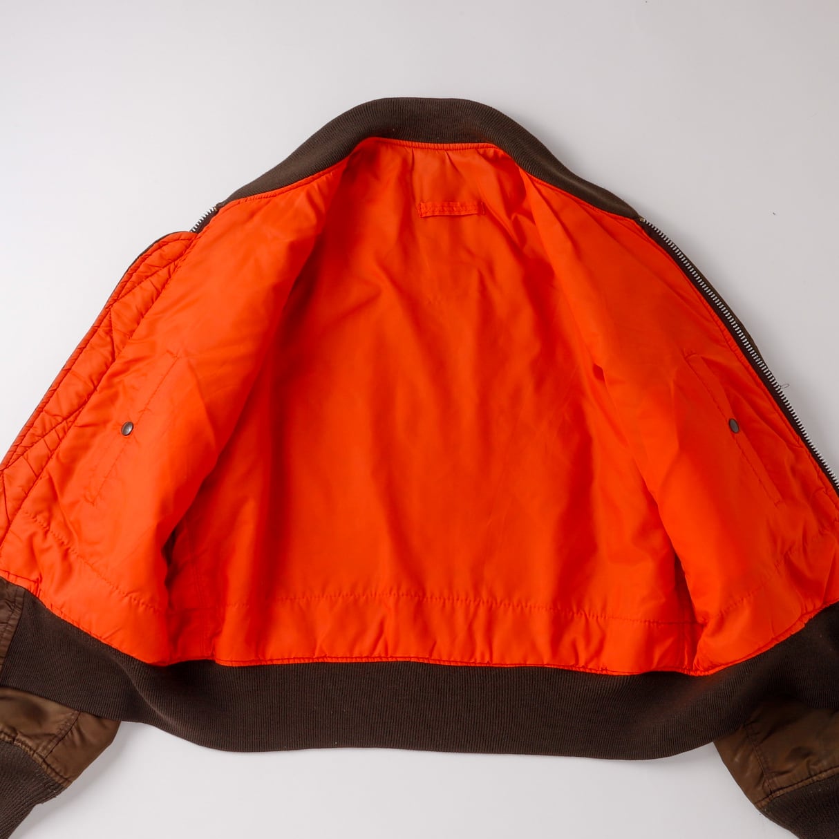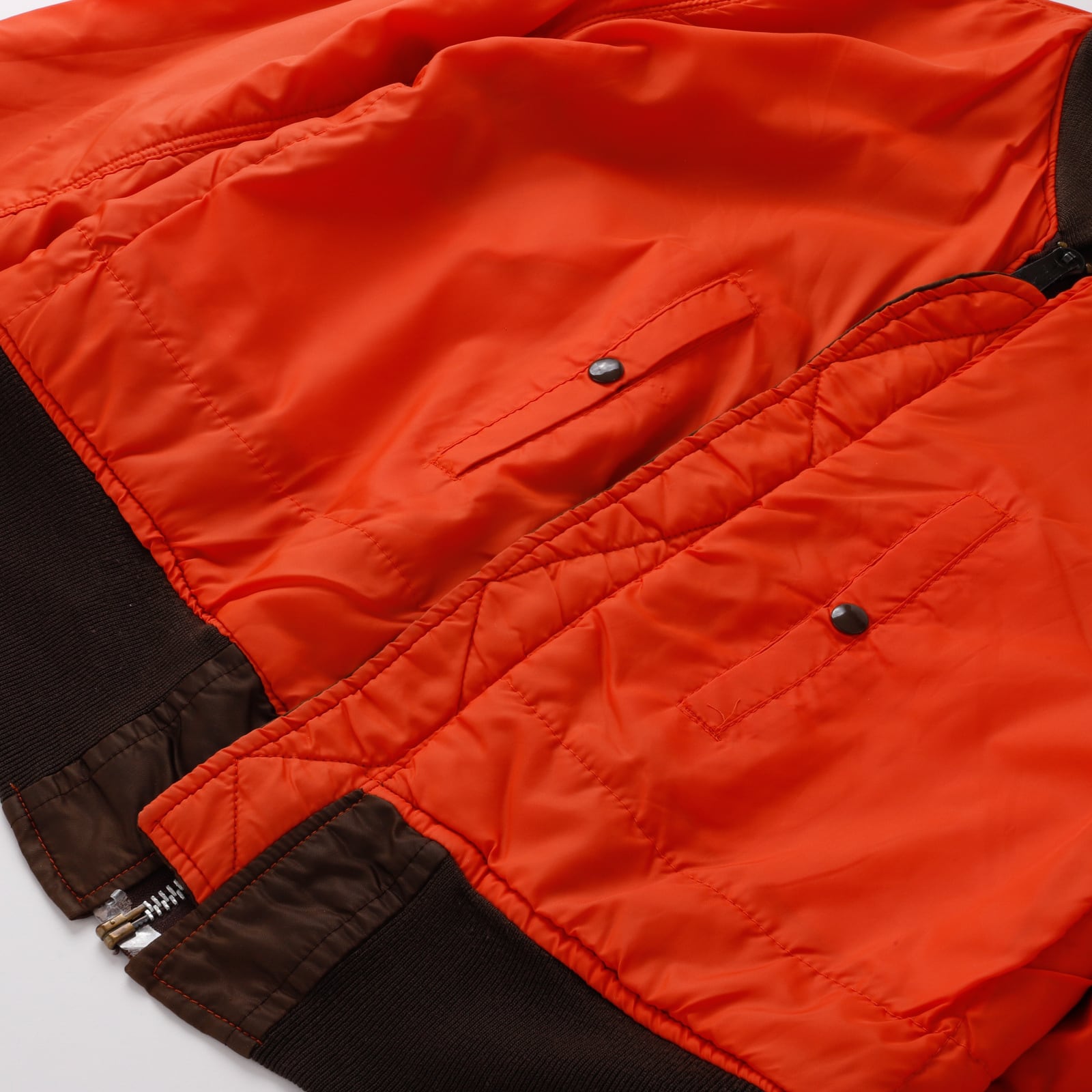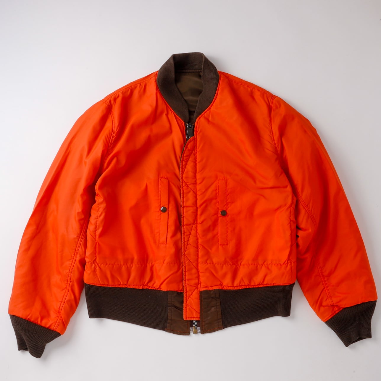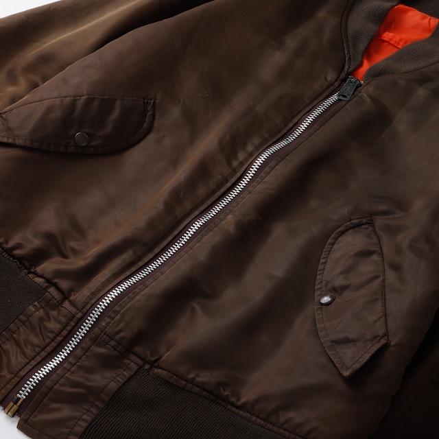 【美品】70s U.S AIR FORCE TYPE MA-1 Vintage Flight Jacket Special Spec made in USA brown rare color / 70年代 ヴィンテージ フライトジャケット MA1 アメリカ空軍 ミリタリー アメリカ製 リバーシブル ブラウンカラー サイズM 実寸L レアカラー IDEAL ジップ