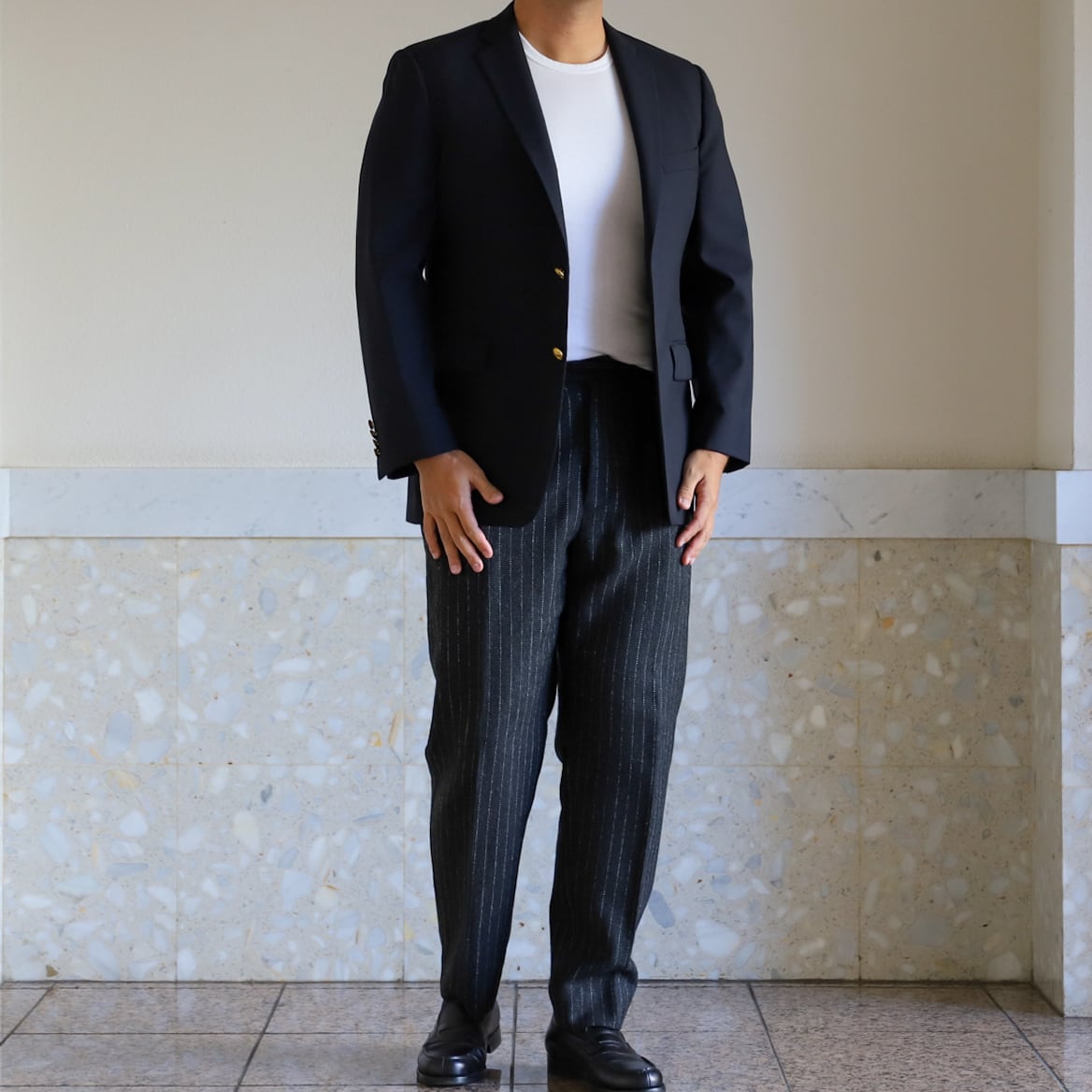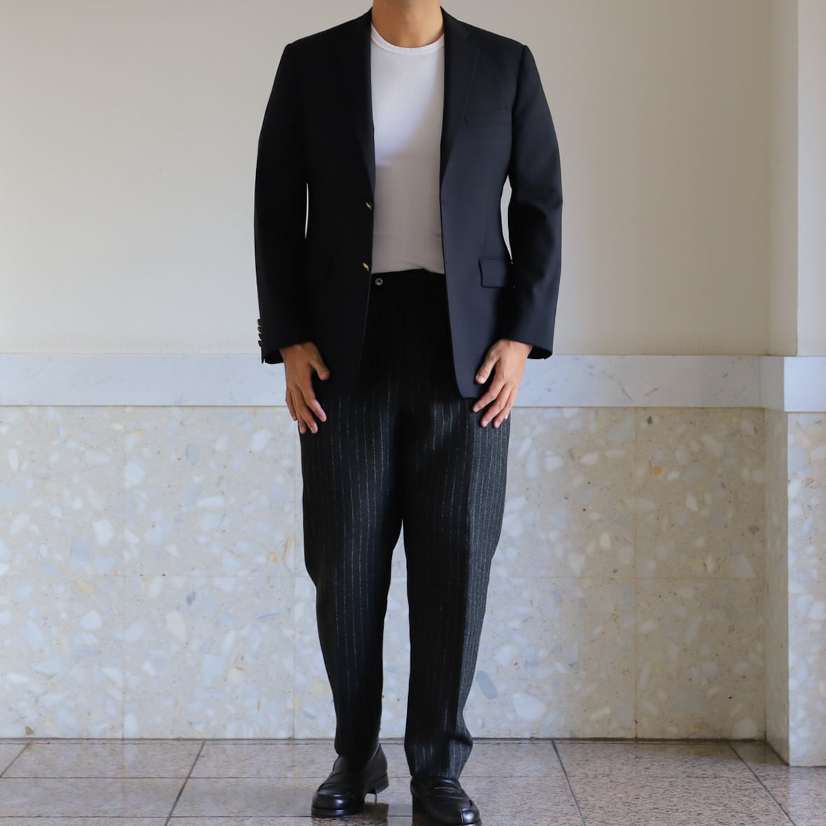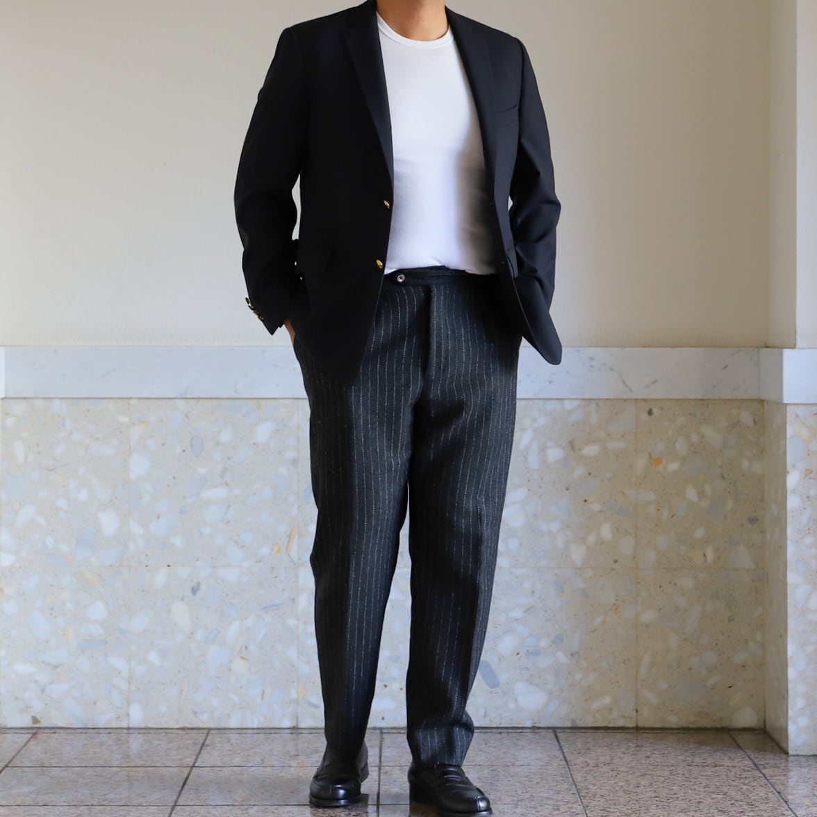 フォーマル合わせでも素敵ですが、サラッと羽織ってスラックスやデニム、ミリタリー パンツなどに合わせるのも抜群。