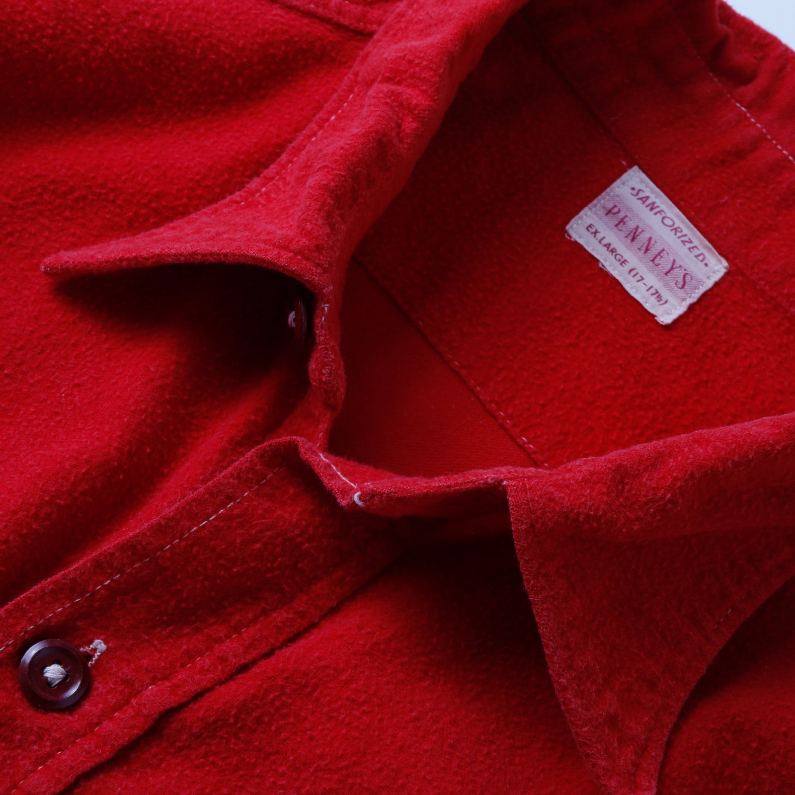 【美品】50s PENNEY'S special vintage cotton flannel shirt big size mint condition made in USA / 50年代 ヴィンテージ ぺニーズ コットン フランネル シャツ サイズ17H 実寸XL ヘビーネル USA製 ミントコンディション レッド