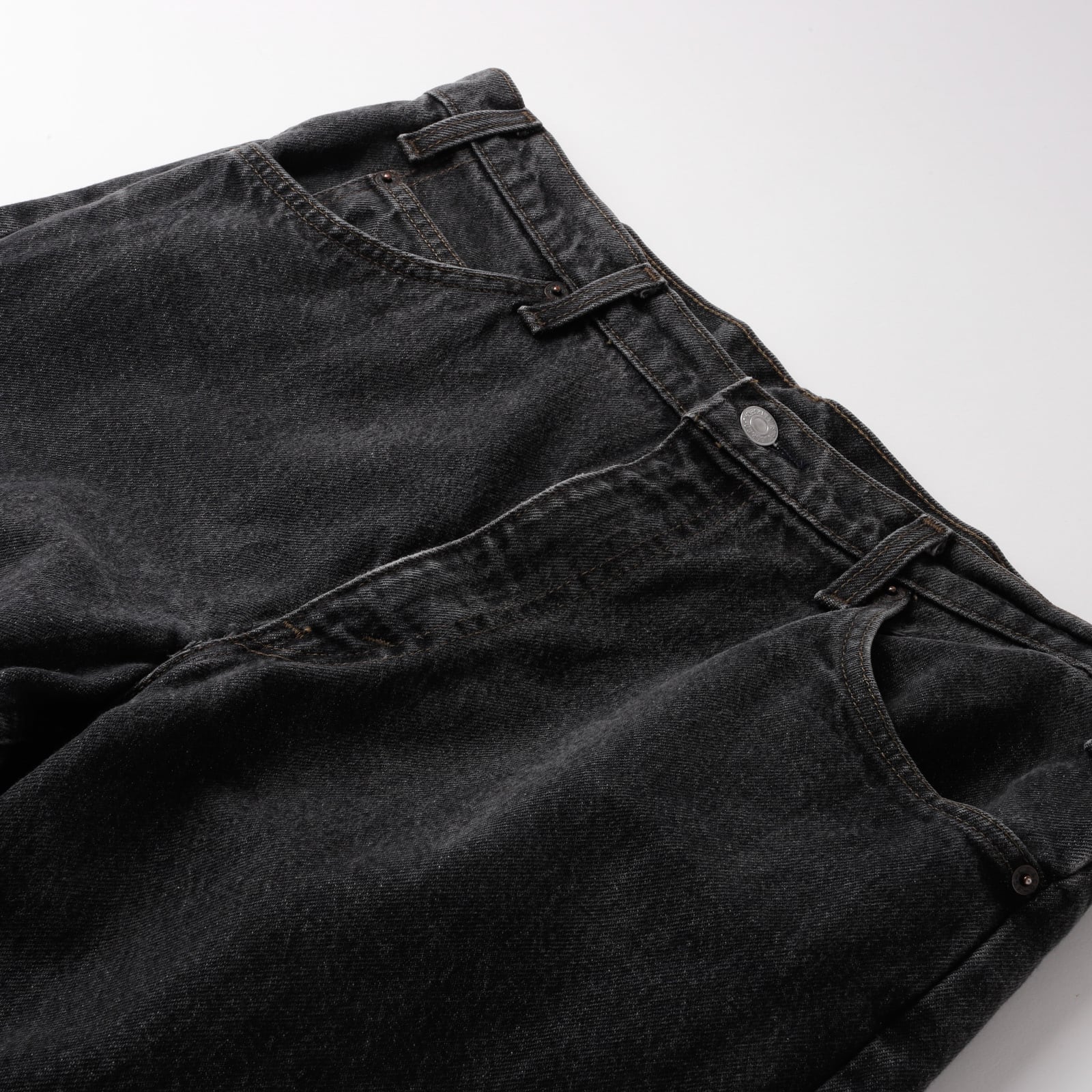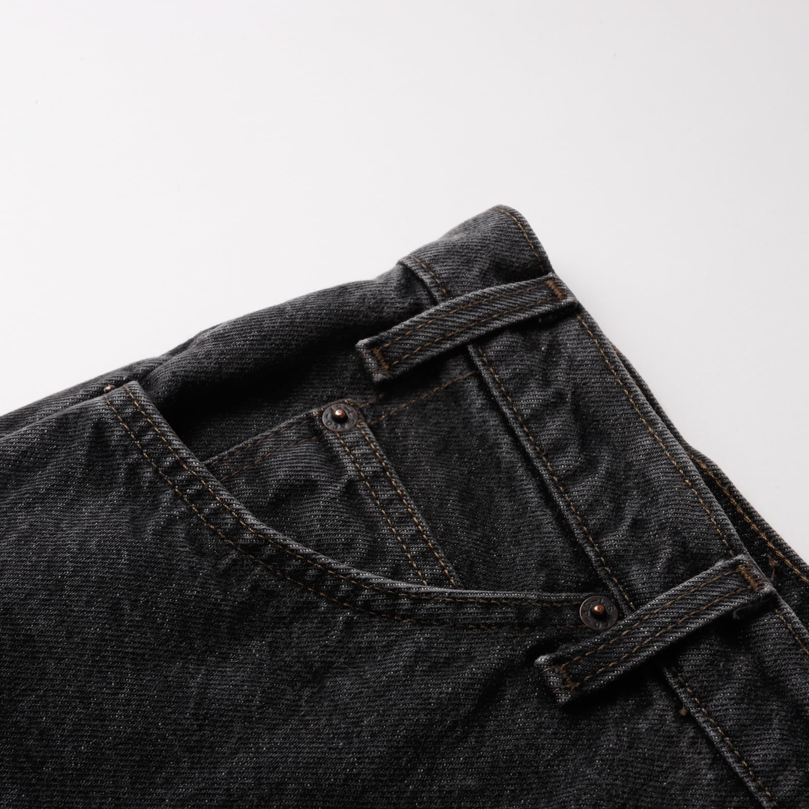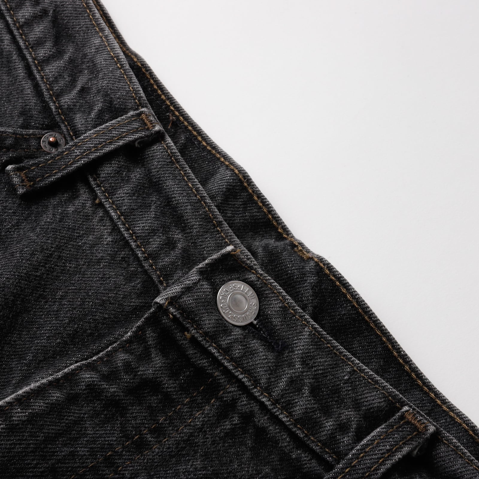 色落ちも少なく完璧な色味、ブラックデニム生地には張りが残っているミントコンディション。