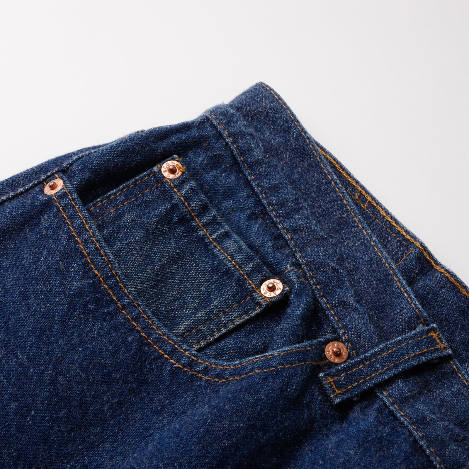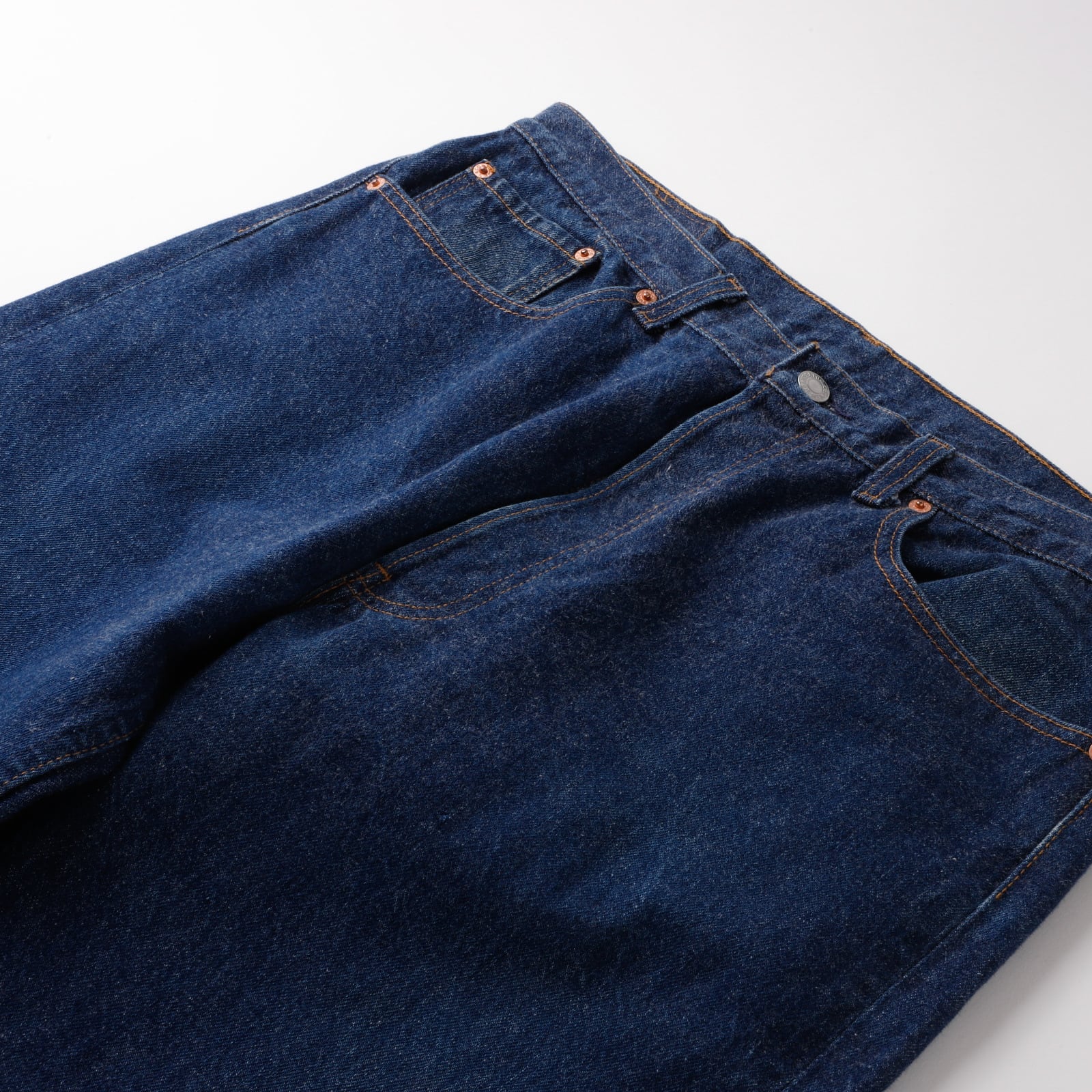 流行にとらわれず長年使えるシルエット、シンプルなデザインになりますのでとても使い勝手の良いデニムパンツになります。