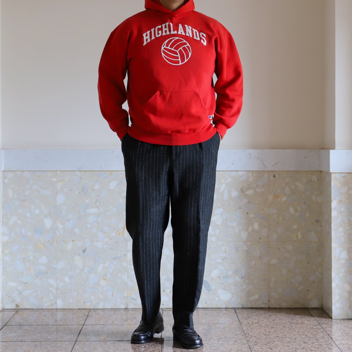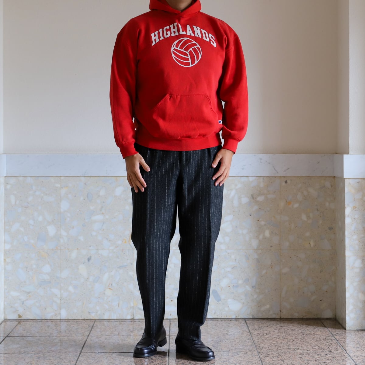 当時の古い年代ならではの生地感と、ヴィンテージスウェットでも非常に希少価値が高いフーディシルエット。そしてボックスシルエットが魅力。