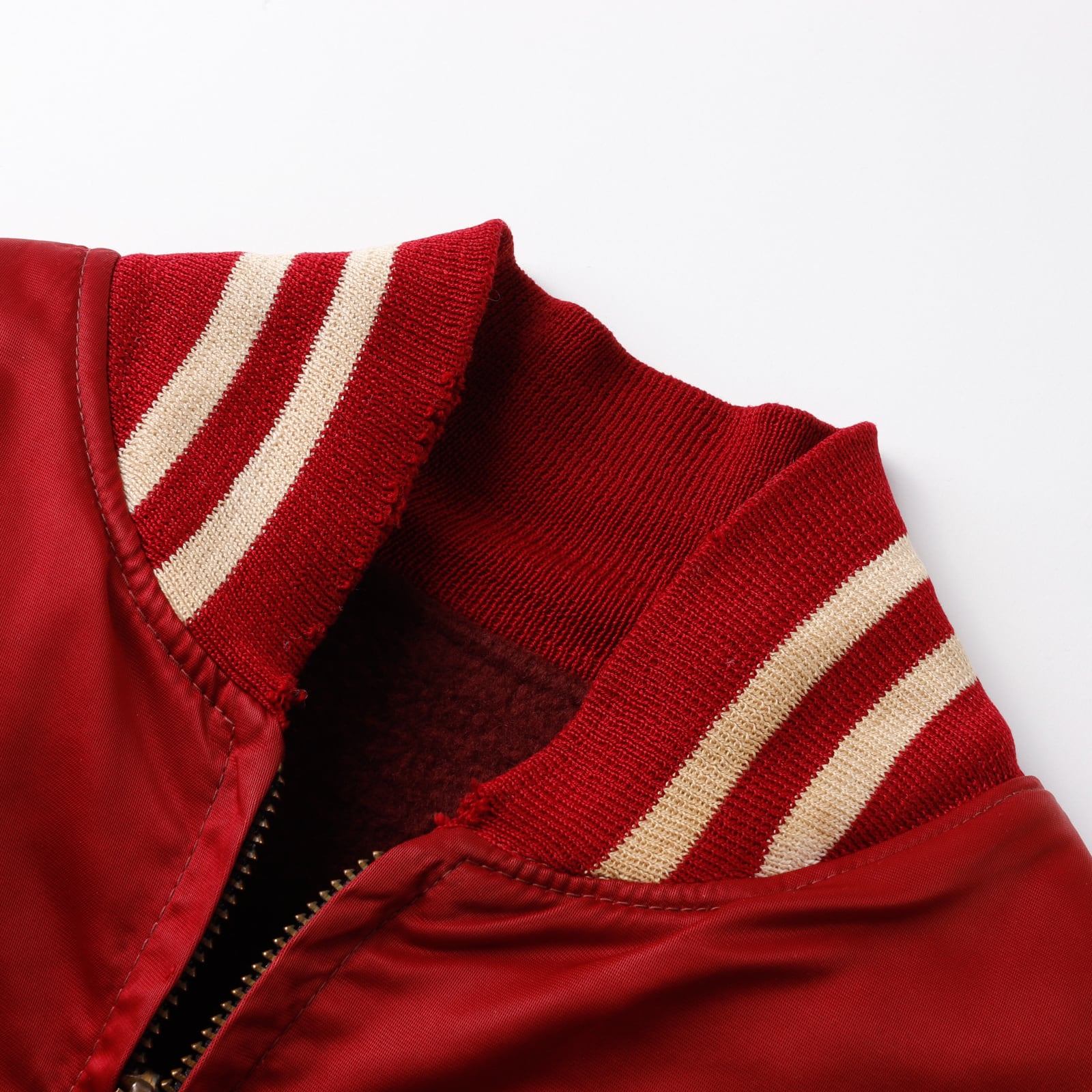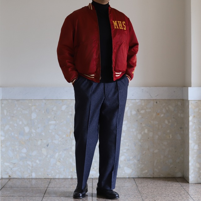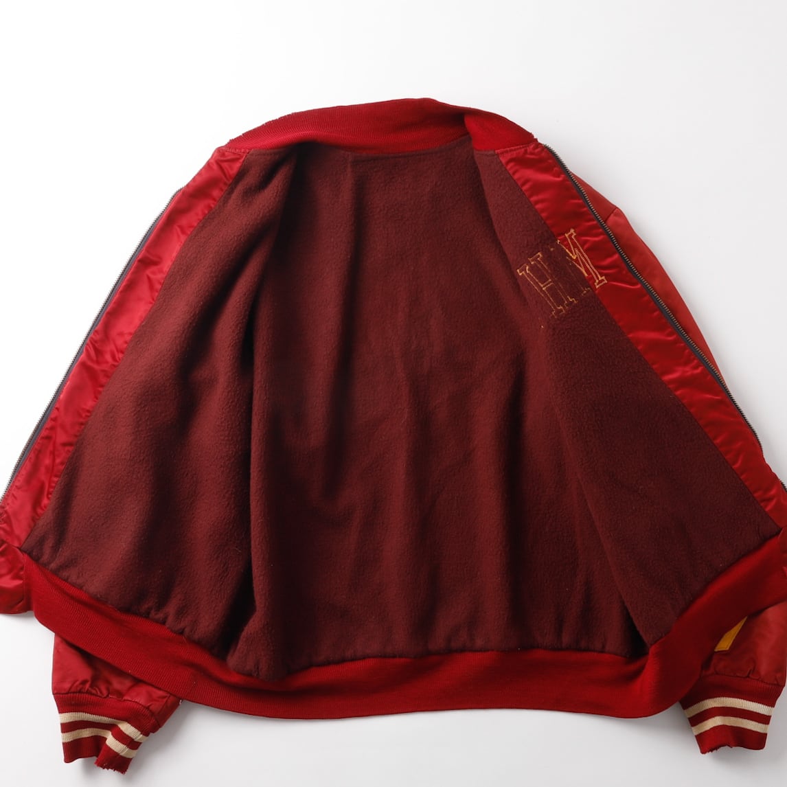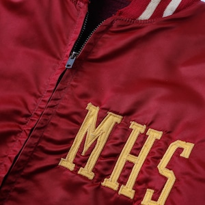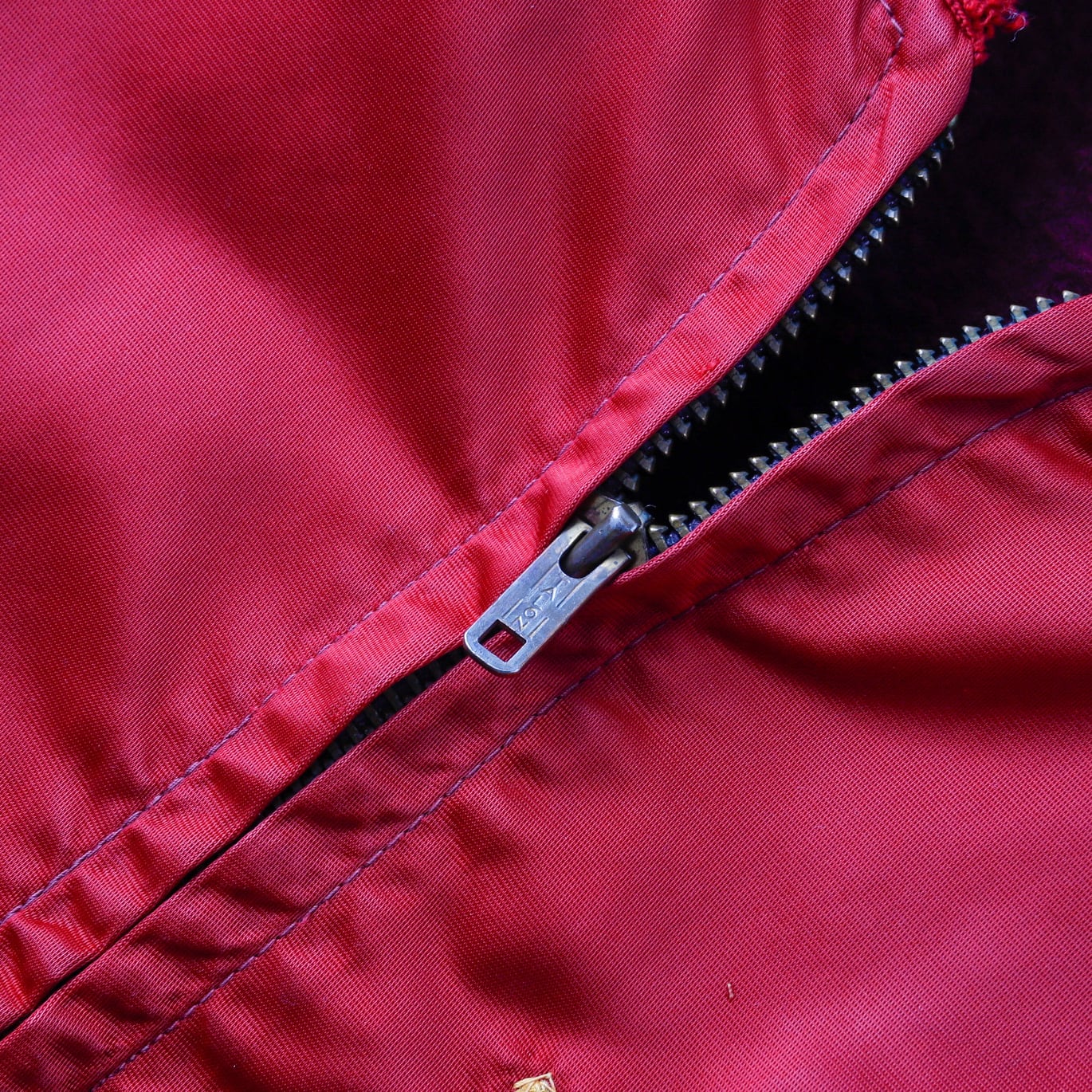 【極美品】50s MHS special vintage jacket satin fabric blouson made in USA mint condition American college TALON ZIP/ 50年代 ヴィンテージ アメリカ製 サテン ジャケット ブルゾン 実寸サイズ46 実寸XL USA製 えんじ色 ミントコンディション