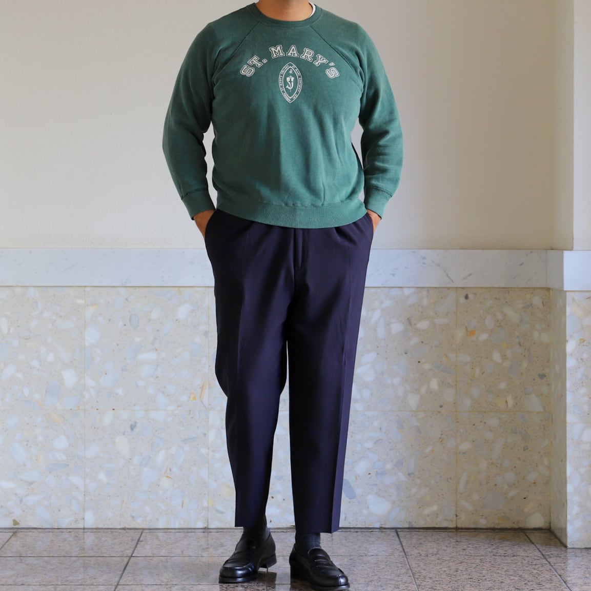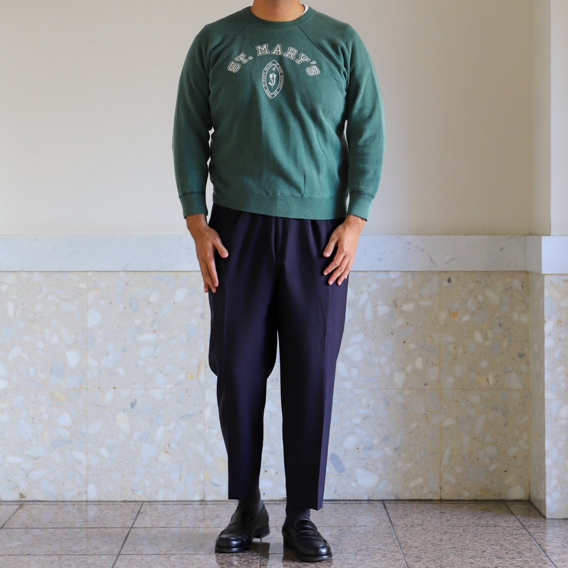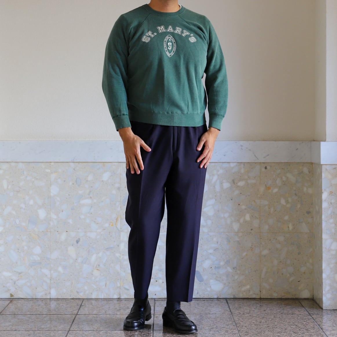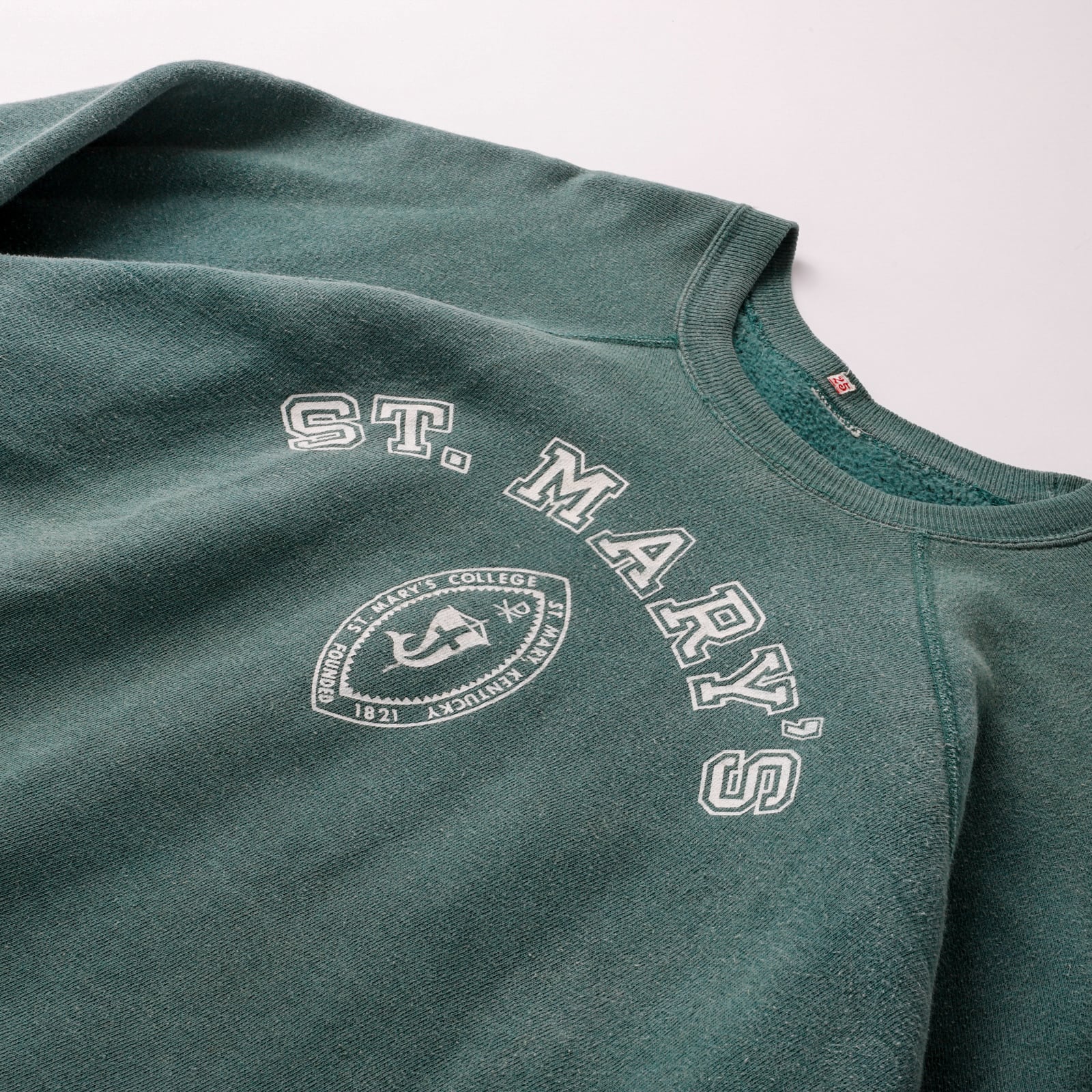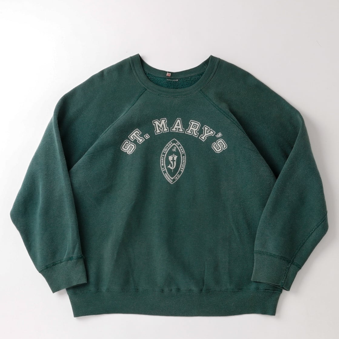 【逸品】50s special vintage raglan sweat shirt "ST. MARY'S" made in USA fade green big size / 50年代 ヴィンテージ 長袖 ラグラン袖 スウェットシャツ トレーナー USA製 実寸L ビッグサイズ フェード グリーン 激レア コットン100%
