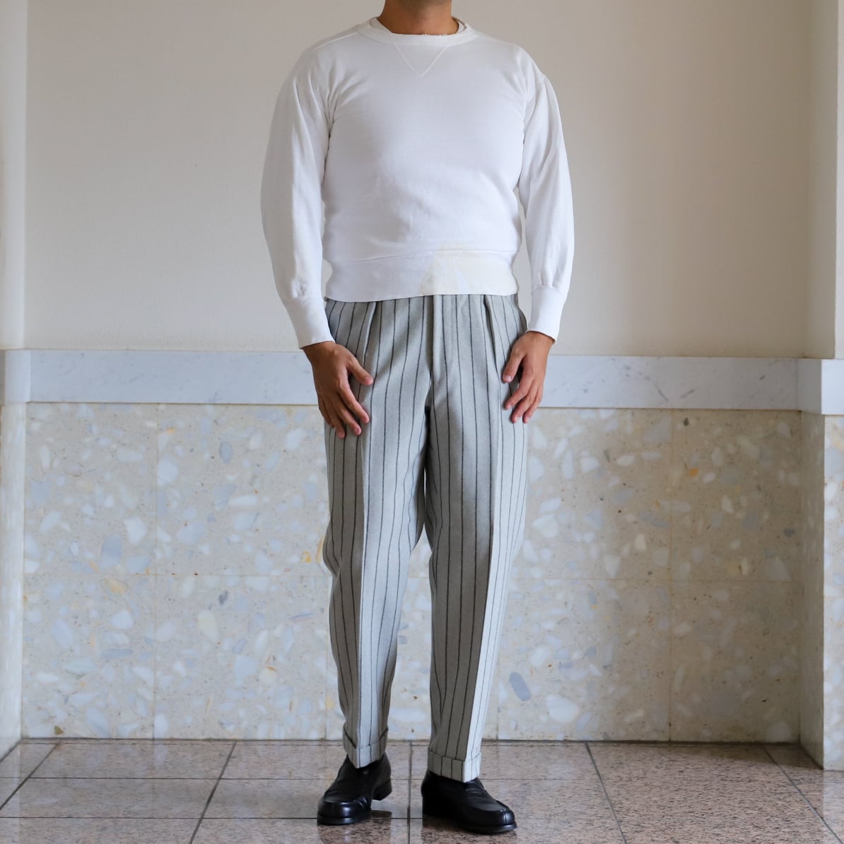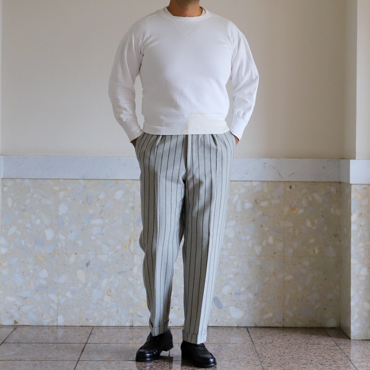 1940年代、無地白のスウェット。