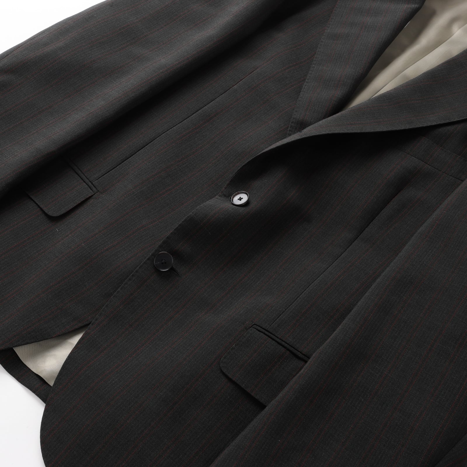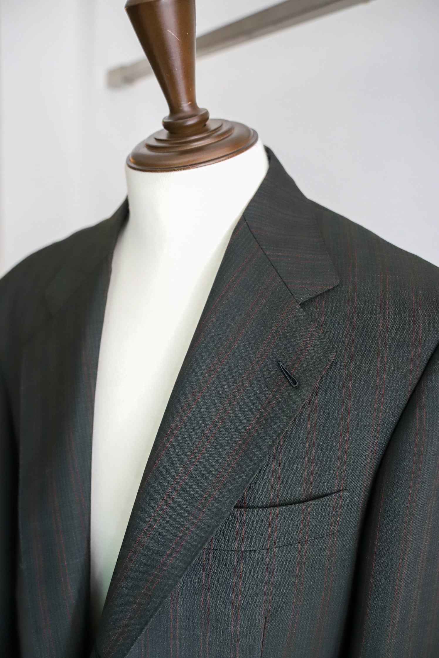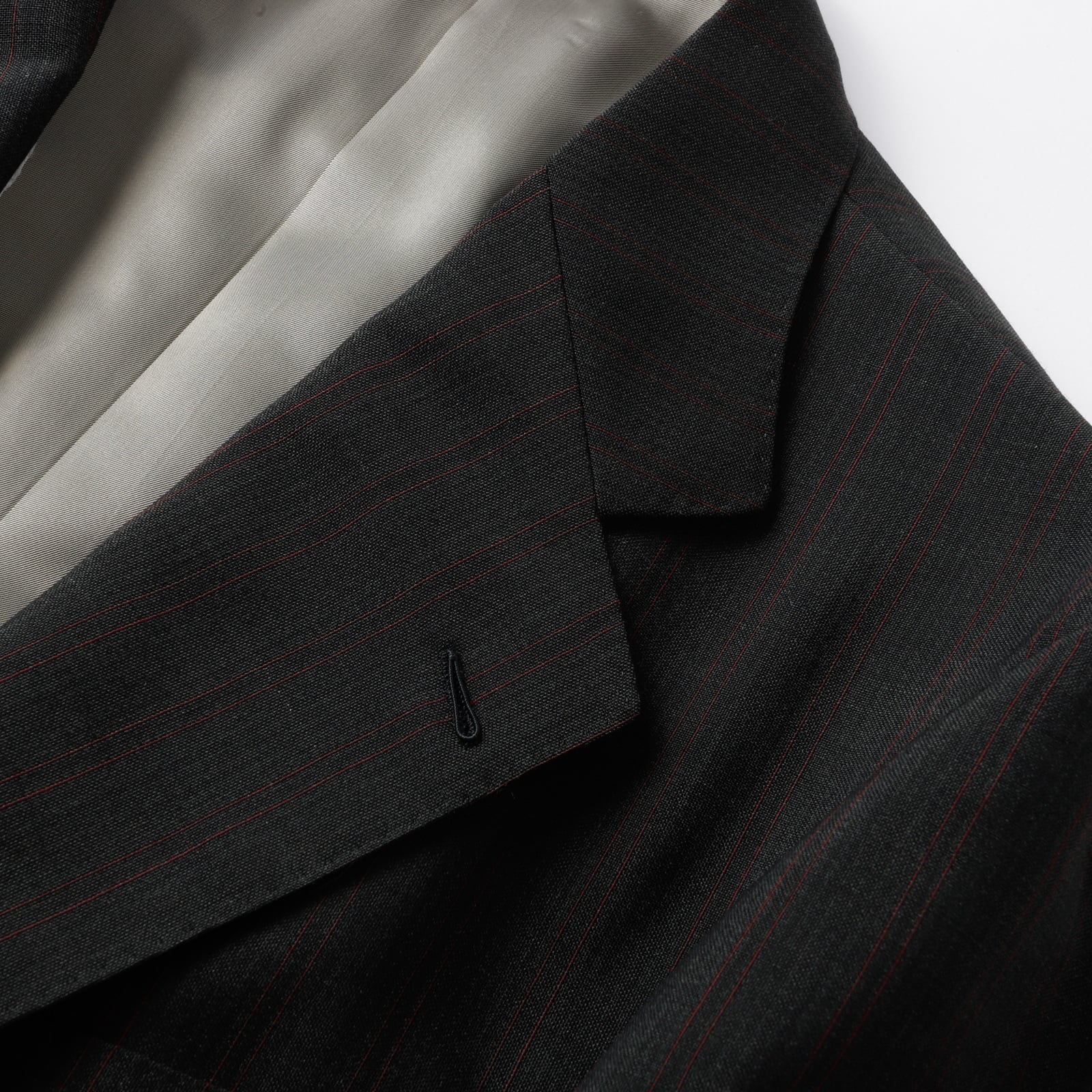 ラペルの太さやシルエットなど、身幅にややゆとりを持たせつつ着丈もアレンジ。