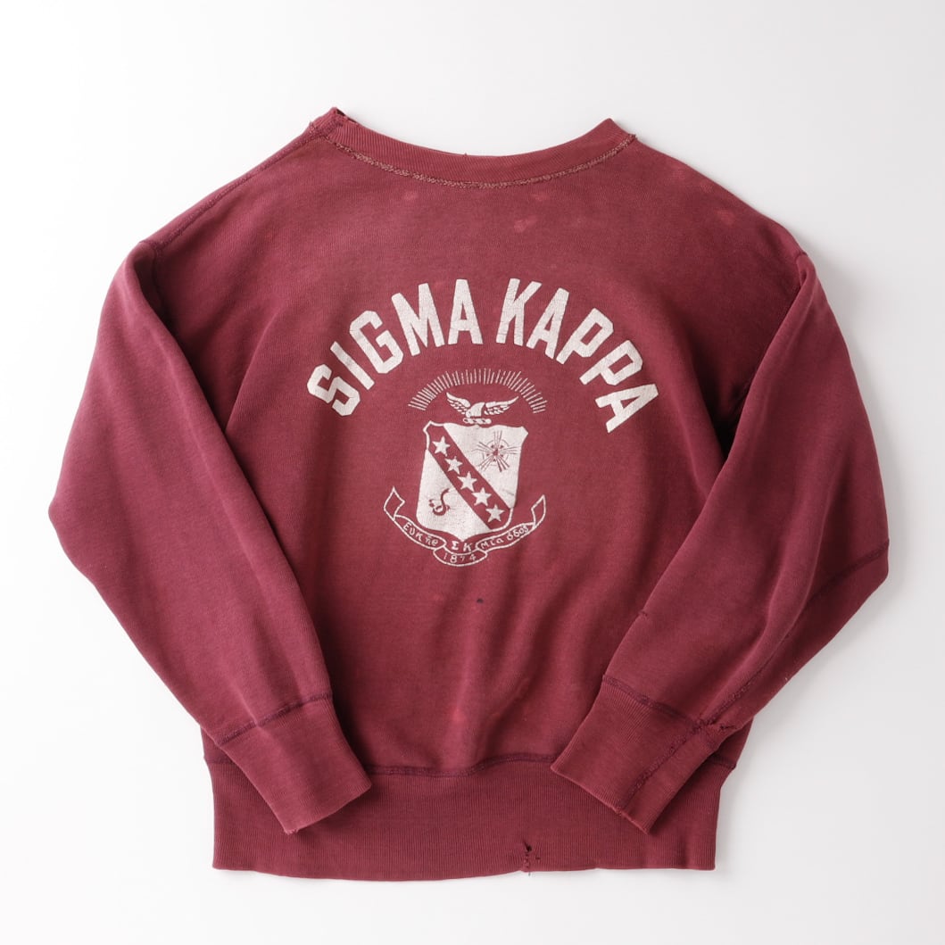 【希少】50s special vintage sweat shirt "SIGMA KAPPA" george town college made in USA fade burgundy / 50年代 ヴィンテージ プリント 長袖 スウェットシャツ トレーナー ジョージタウン大学 カレッジ USA製 実寸サイズM フェード バーガンディ バックプリント