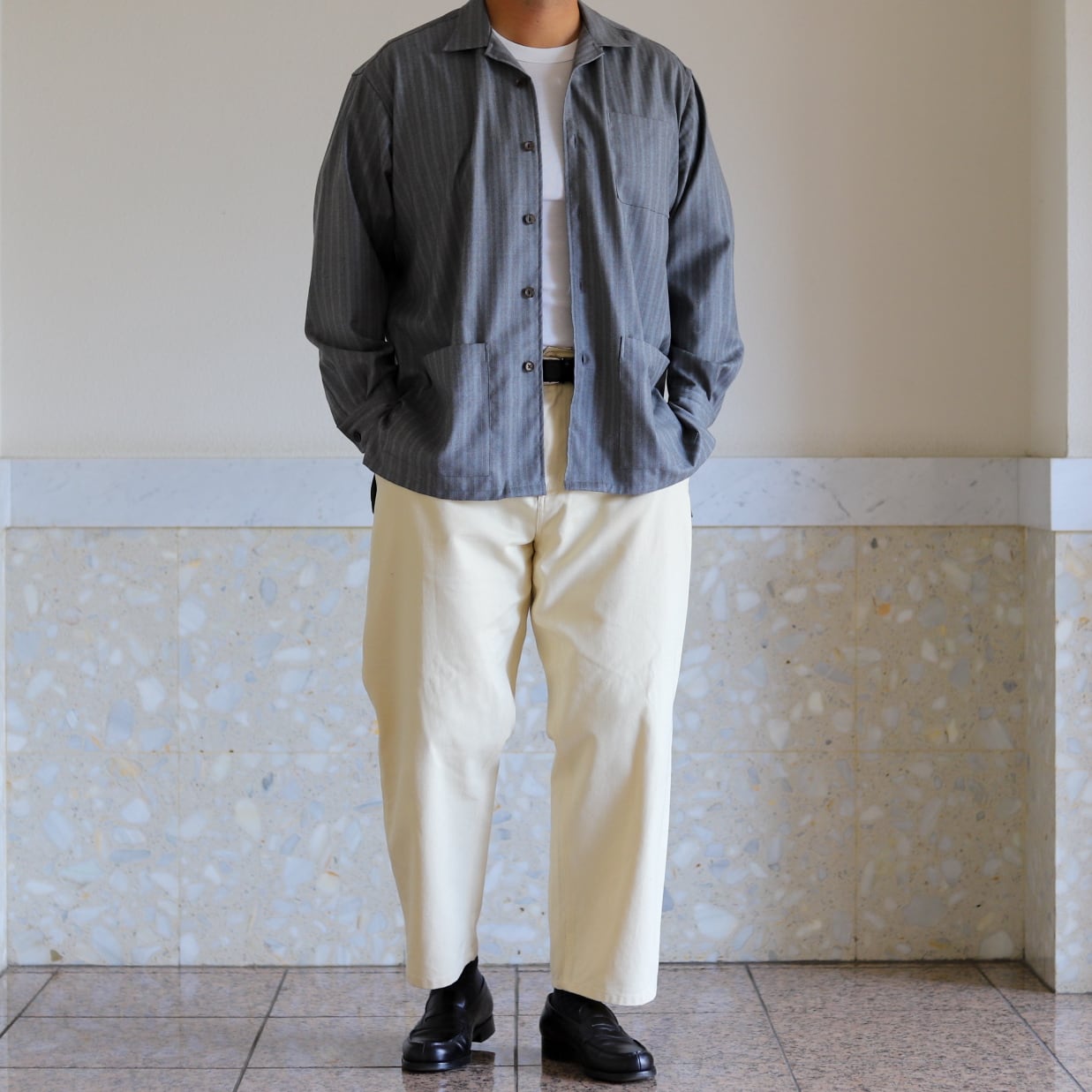 スラックス合わせでももちもん、チノパン、ミリタリーパンツ、ローファー合わせ、デニムスタイルにも抜群です。