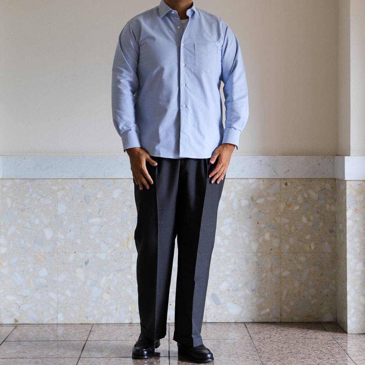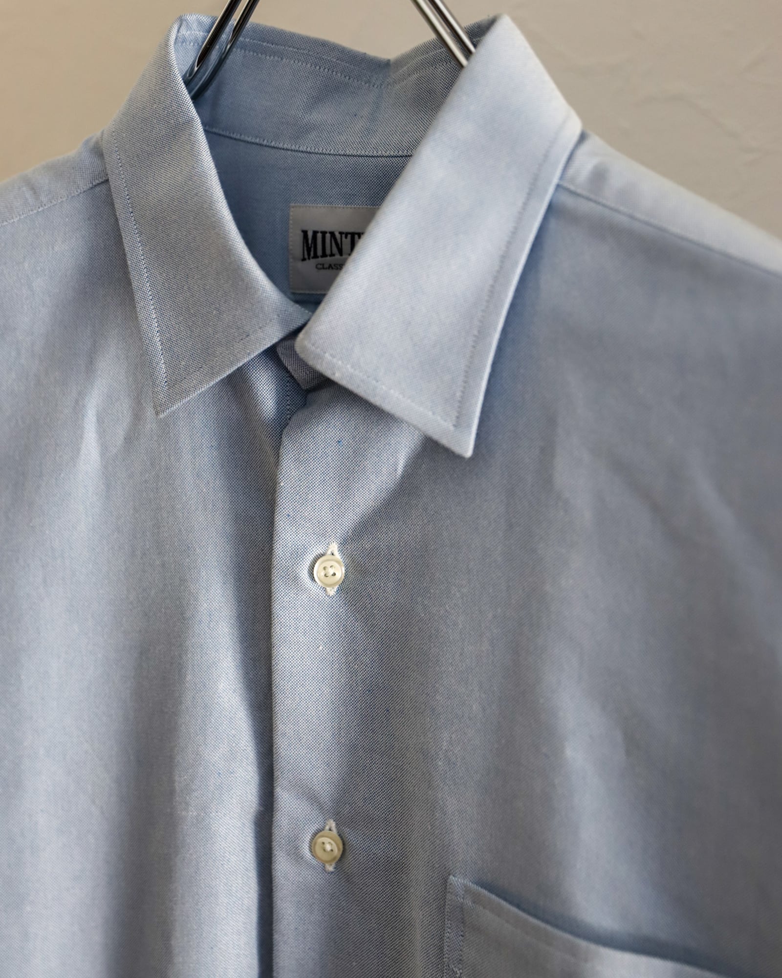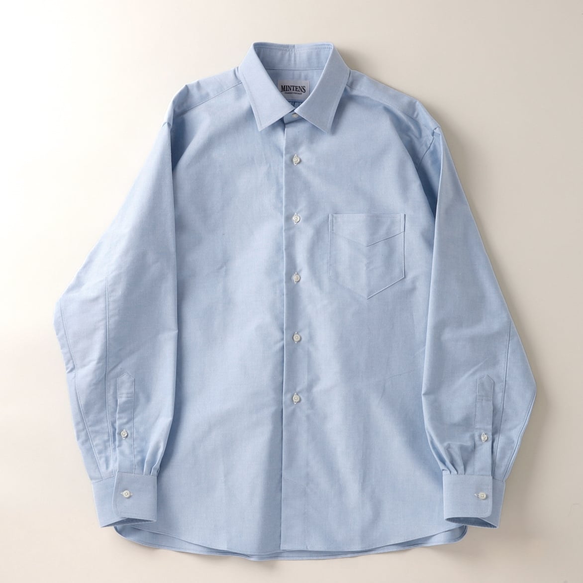 【新品】MINTENS 1930s dead stock Oxford shirts made in Italy fabrics made in JAPAN / デッドストック イタリア製生地 オックスフォード シャツ サックスブルー 日本製 オリジナルブランド 1930年代シルエット サイズ ①