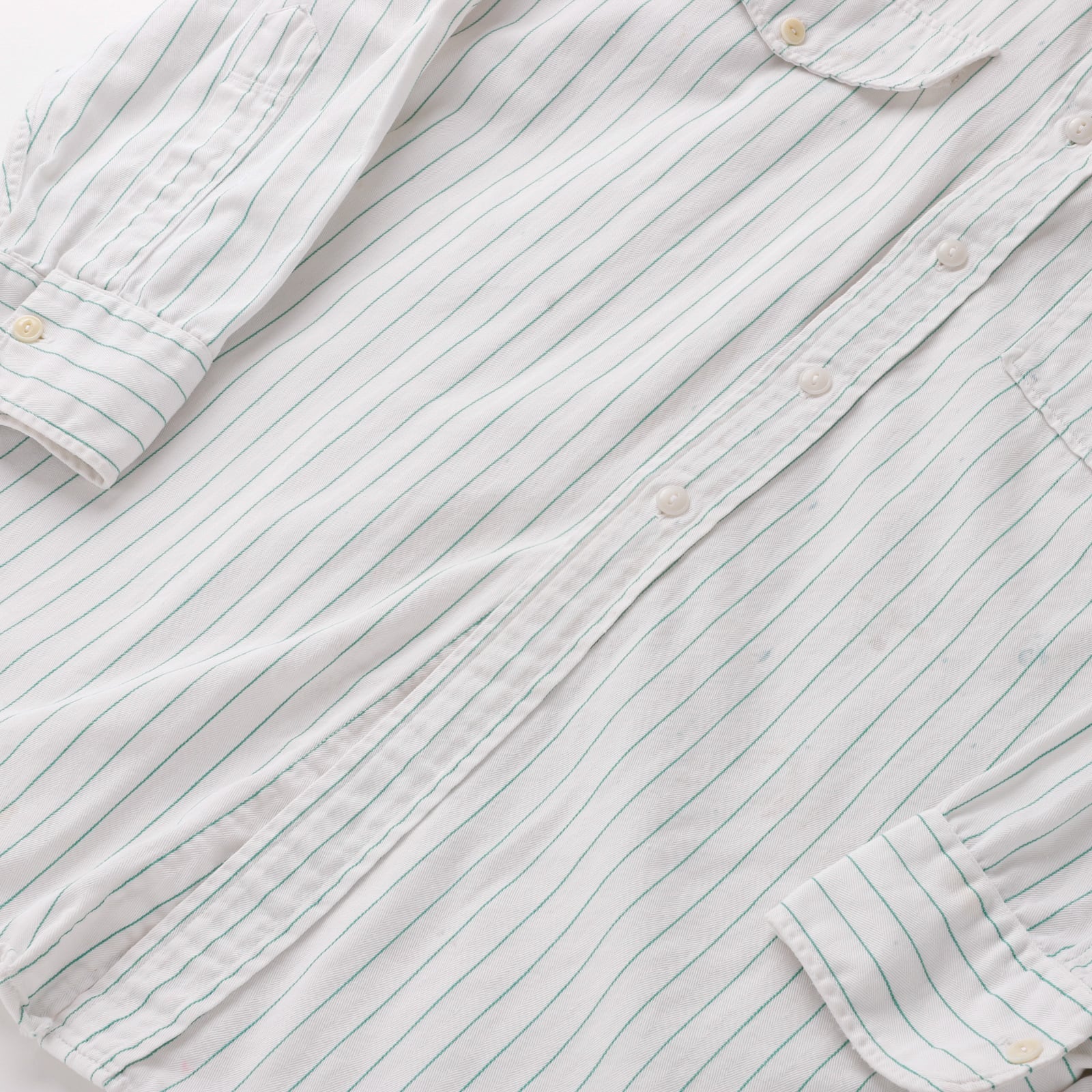 小ぶりな襟元に特徴があり、諸説ありますがこちらは1950年頃 アメリカのワークシャツとして使用されていたと推測されており、こちらのデザインはもちろん初見です。