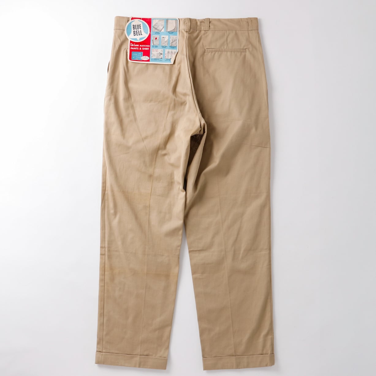 【未使用】50s special vintage work chino pants trousers beige Made in USA W40 GRIPPER ZIPPER zip dead stock "BLUE BELL" /50年代 ヴィンテージ ワーク チノパンツ トラウザーズ W40 コットン ベージュ USA製 タグ付き デッドストック