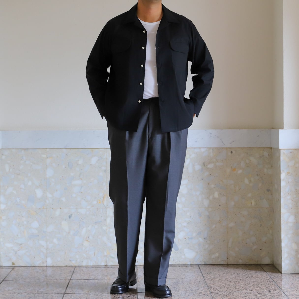 新作アイテムとして60年代アメリカンオープンカラーシャツをサンプリングして製作。