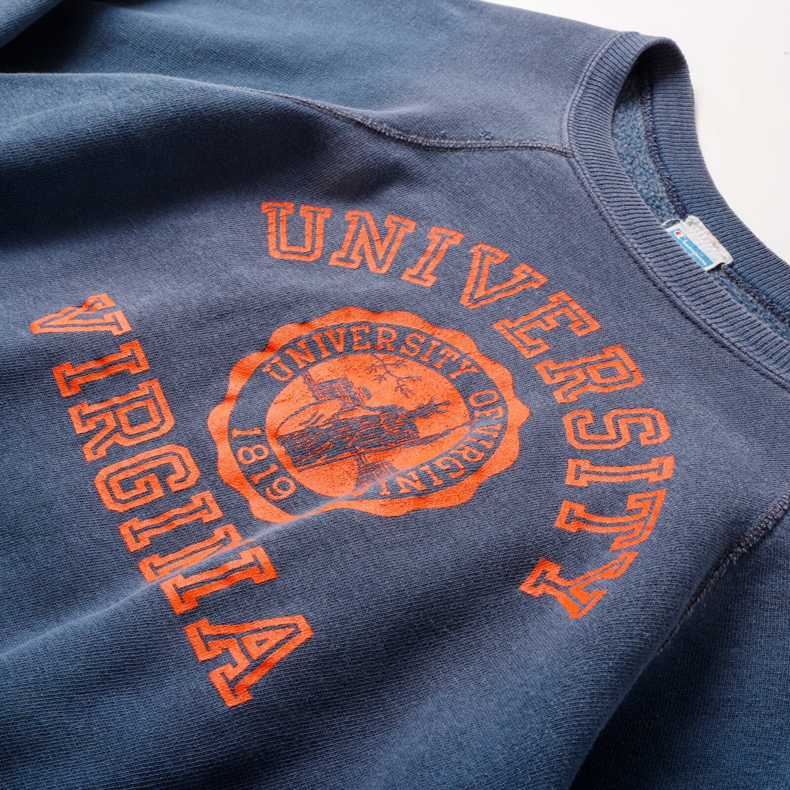 【美品】70s special vintage champion raglan sweat shirt mint condition "UNIVERSITY VIRGINIA" made in USA fade navy / 70年代 ヴィンテージ チャンピオン ラグラン 長袖 スウェットシャツ トレーナー USA製 サイズL フェード ネイビー バータグ ミントコンディション