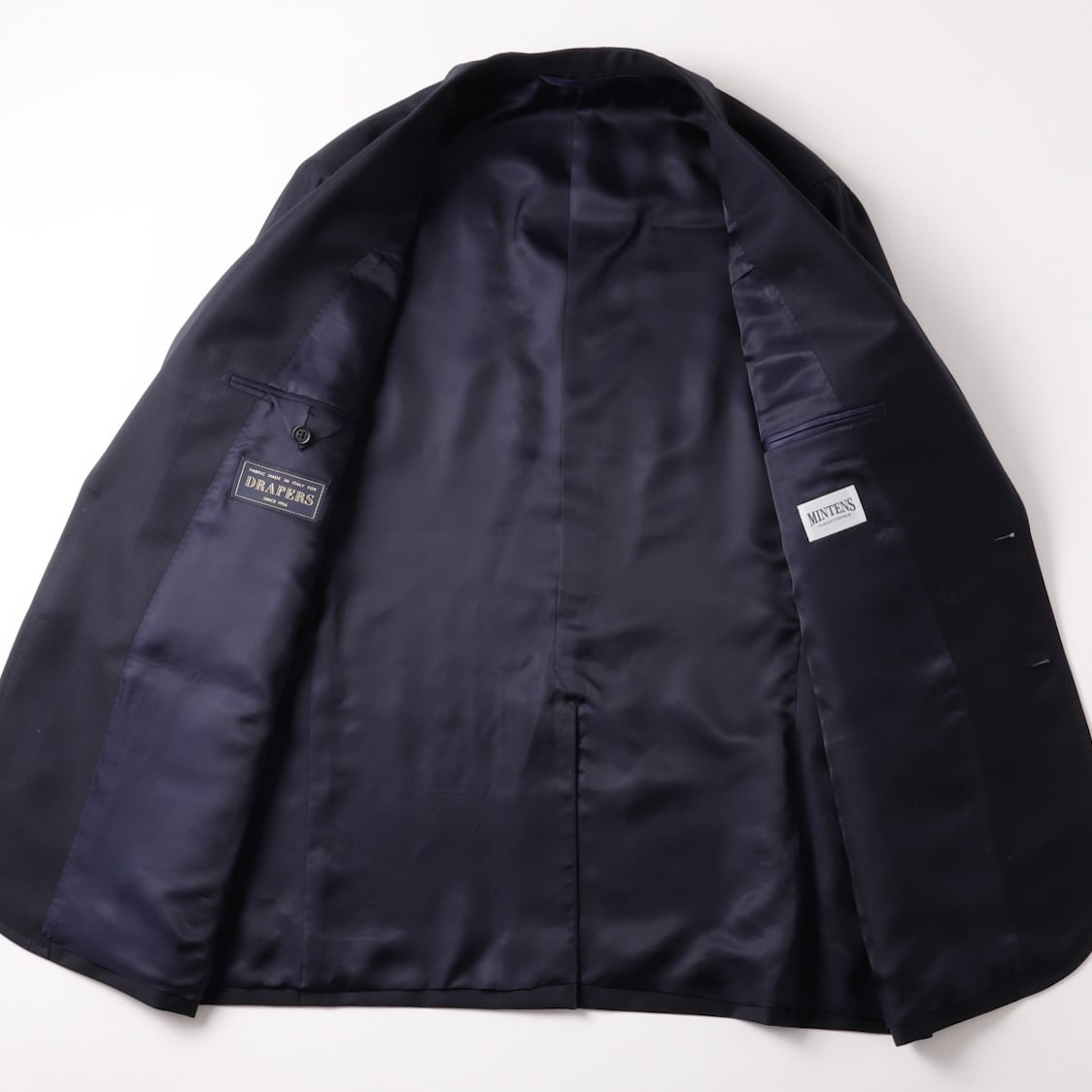 MINTENSオリジナル紺ブレは1950年代頃の古き良きアメリカの紺ブレを意識して製作。ラペルの太さやボックスシルエットなど、ヴィンテージライクな仕様になっております。