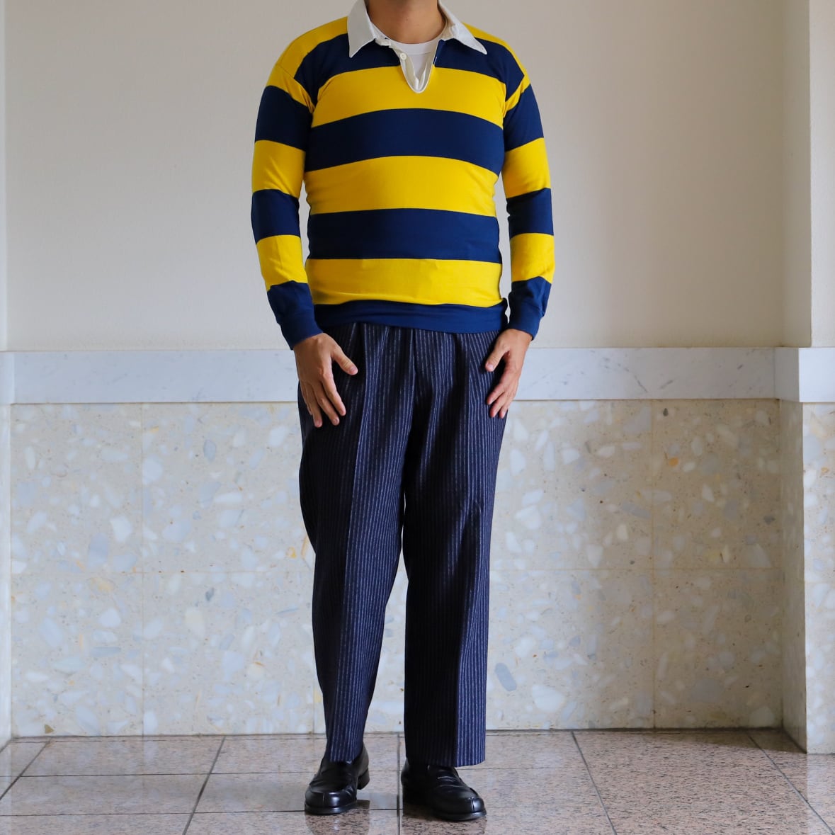80年代 襟付き 地厚 ロングシャツ ラガーシャツ ポロシャツ