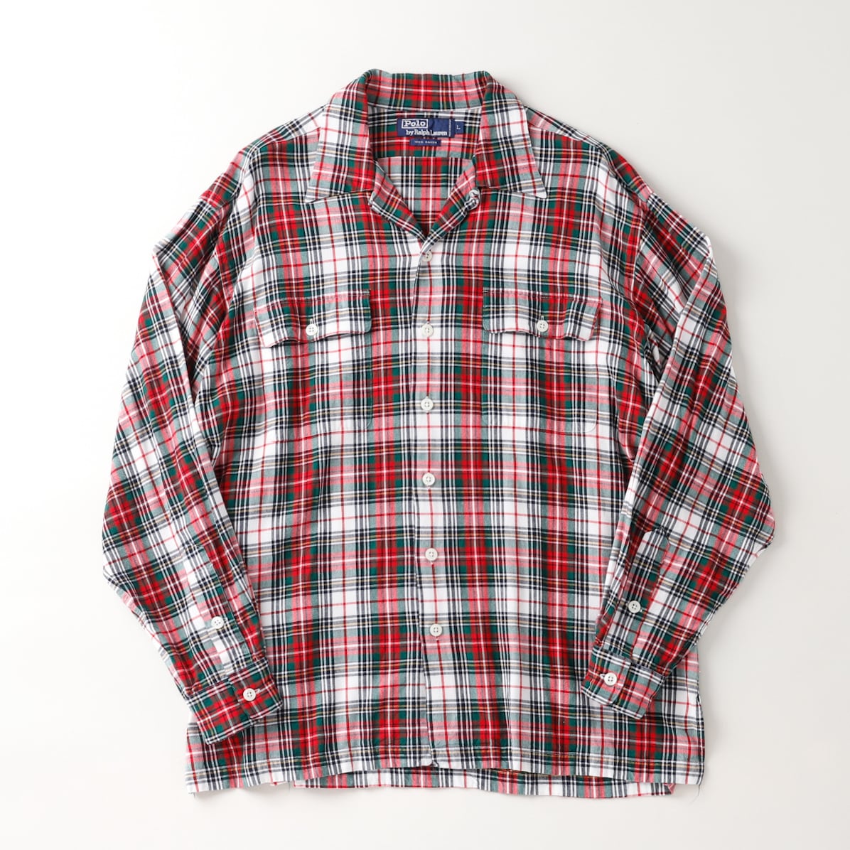 【極美品】80s Ralph Lauren special rayon open collar shirt big size mint condition / ラルフローレン スペシャル レーヨン オープンカラー シャツ 長袖 ビッグサイズ L チェックシャツ