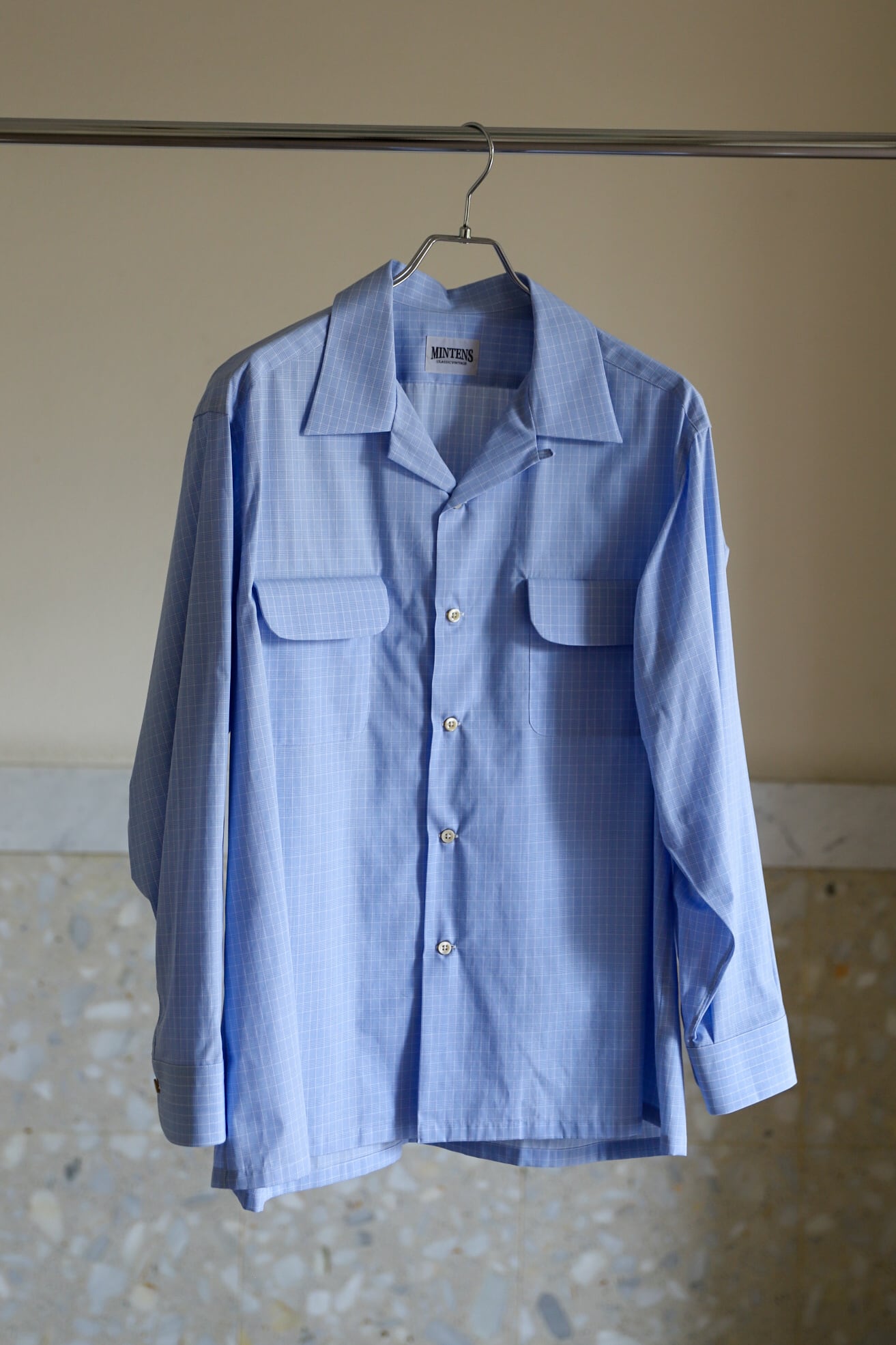 【新品】MINTENS 1960s vintage cotton shirts made in Italy fabrics made in JAPAN/ イタリア製 ヴィンテージ生地 コットン オープンカラー シャツ ブルー オリジナルブランド 1960年代シルエット サイズ①