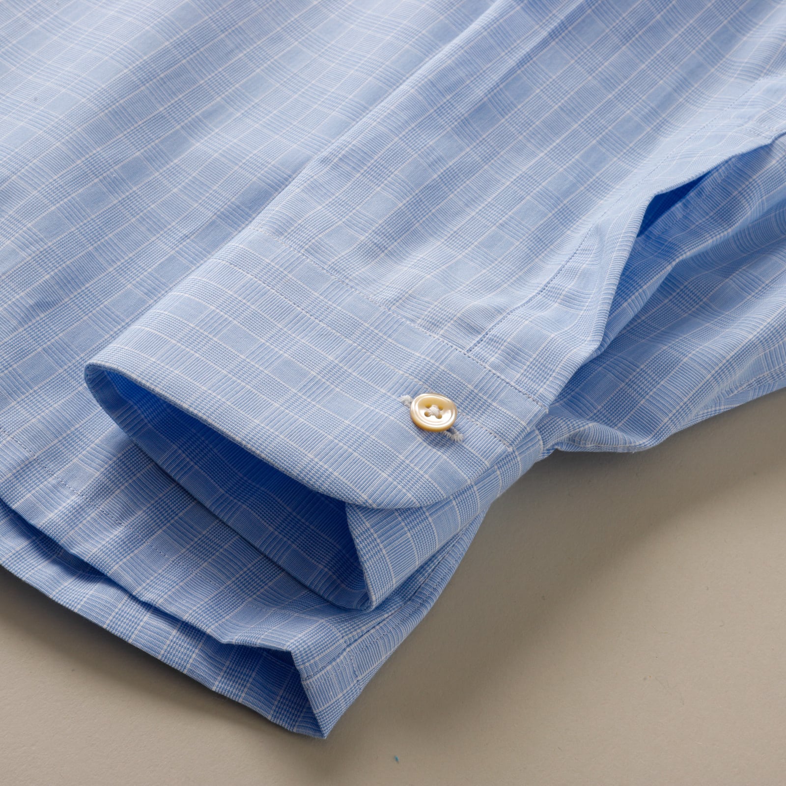 イタリア製 ヴィンテージ生地 ブロード コットン オープンカラー シャツ ブルー